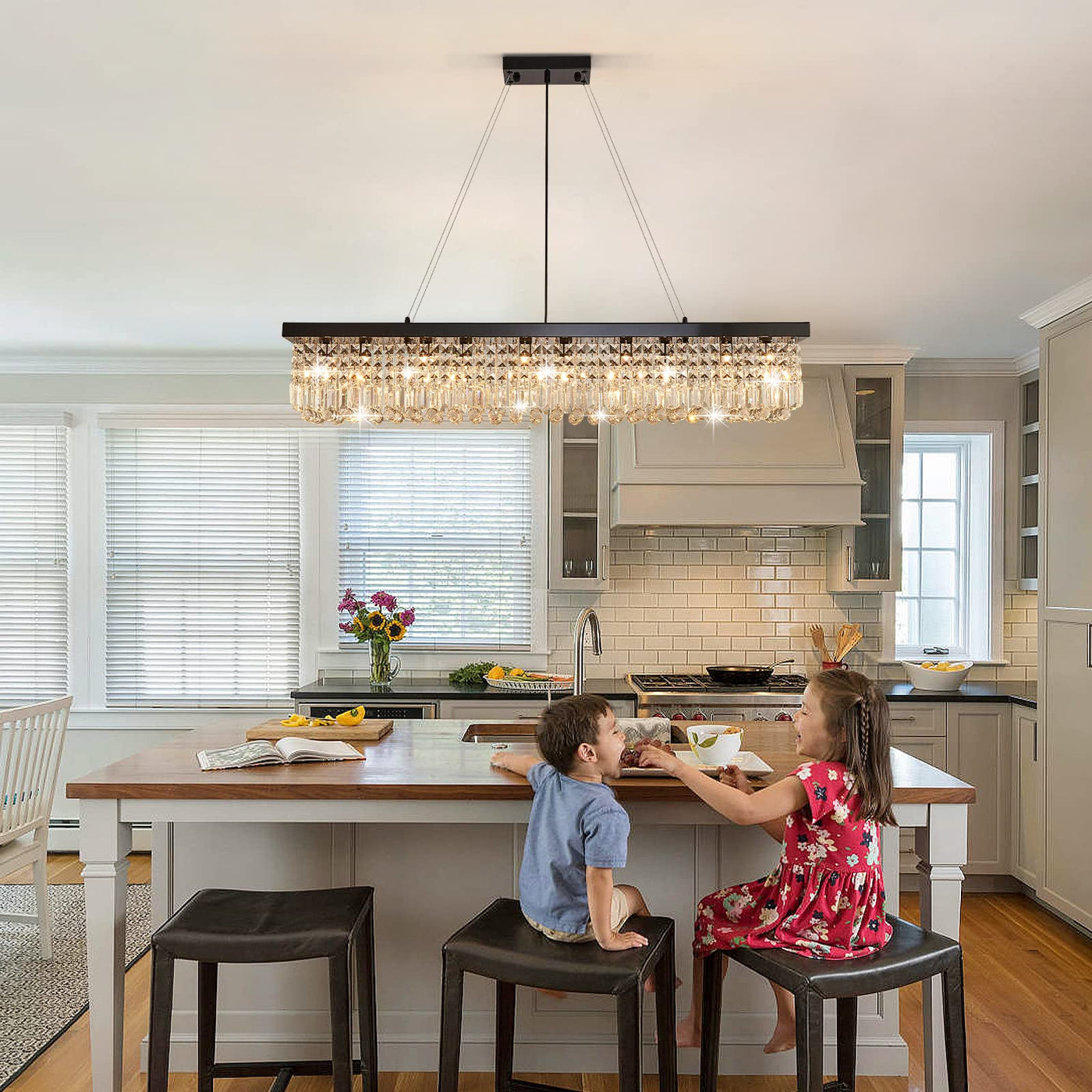 - **Sophisticated Design**: The rectangular shape and modern style make this chandelier an ideal fit for various settings, including dining rooms, living areas, kitchens, and commercial spaces. Its minimalist aesthetic ensures it complements any décor while adding a touch of luxury.
