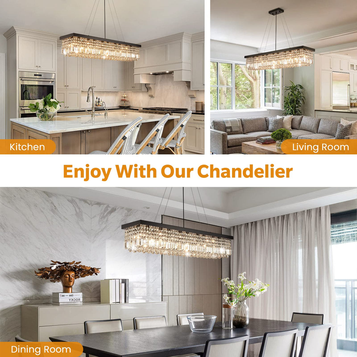 - **Adjustable Dimensions**: Measuring 47 inches in length, 10 inches in width, and 10 inches in height, this chandelier features an adjustable pendant chain with a maximum length of 59 inches. Customize the hanging height to suit your space, with a recommended height of 30 to 35 inches from the tabletop.