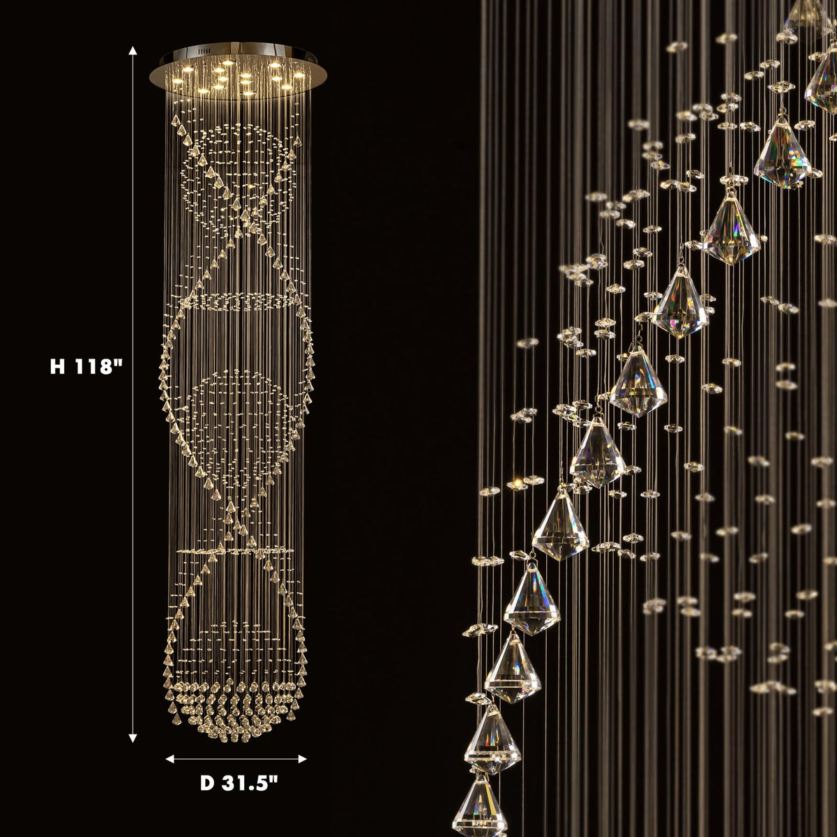 - **Substantial Dimensions**: With a diameter of 31.5 inches and a height of 118 inches, this chandelier serves as a striking centerpiece for large living rooms, dining areas, or commercial spaces.