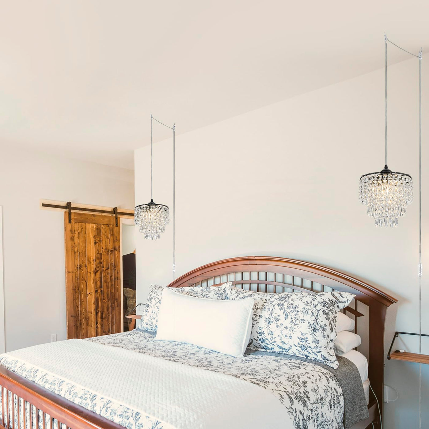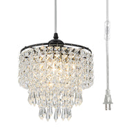 8'' Chandelier Plug In Crystal Chandelier Pendant Light Plug In With 16.4Ft Cord Hanging Lights 3-Tier Crystal Raindrop Chandeli