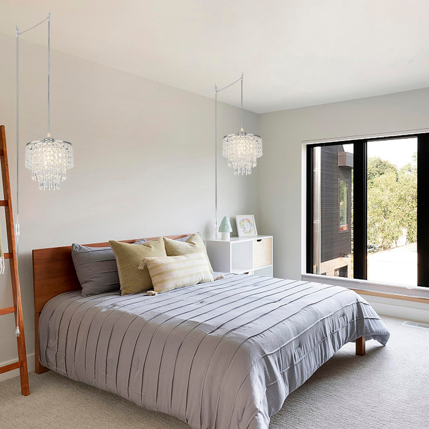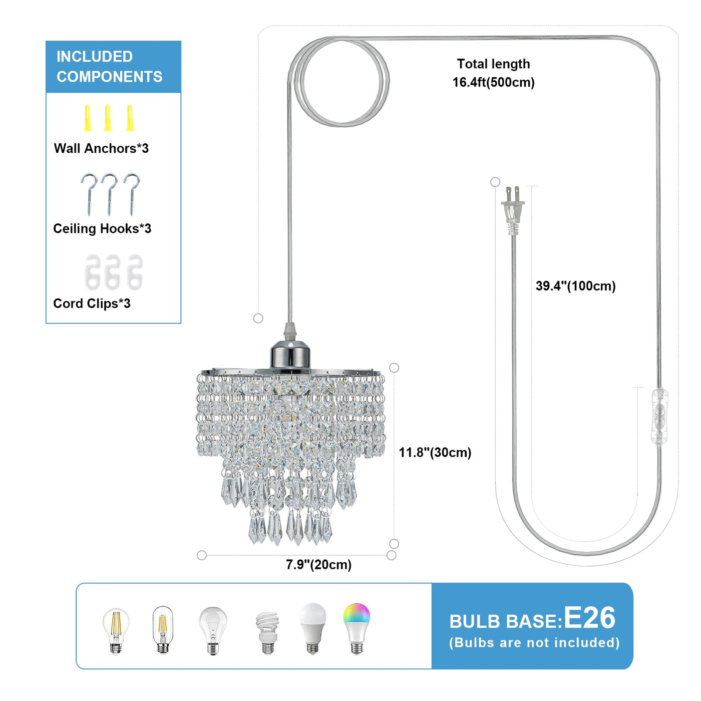 8'' Hanging Lamp Plug In Chandelier Hanging Lights With Plug In Cord Pendant Light Plug In With 16.4Ft Cord For Bedroom Kitchen