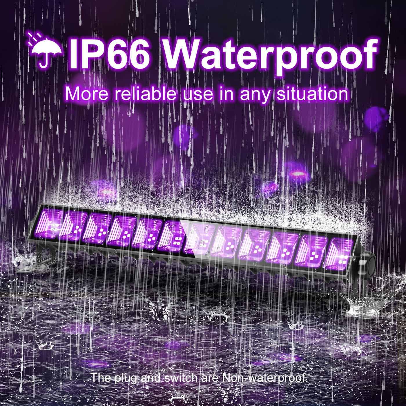 Q: Is the black light safe to use indoors and outdoors?A: Yes, the 40W LED Black Light Bar is safe for both indoor and outdoor use. It emits a wavelength of 385-400 nm, which is harmless to the human body. The sturdy graphene casing and excellent heat dissipation design also enhance safety during use.