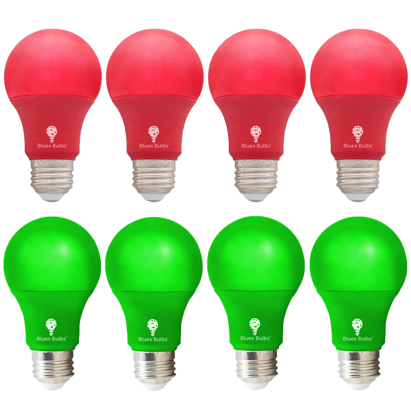 8 Pack A19 Led Red Light Bulb Led Green Light Bulb 120V E26 Base 9 Watt (60-Watt Replacement) Red Bulb Red Bulb, Party Decoration, Porch, Home Lighting, Christmas Light Bulbs