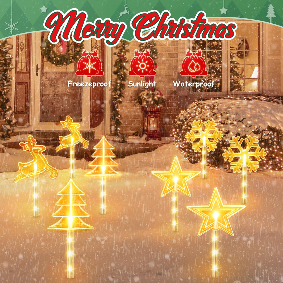 8 Pack Christmas Decorations Outdoor for Yard, 2 Charging Ways Large 1200mAh Solar Christmas Pathway Lights, 32 LED Christmas Lights 10 Modes Waterproof Christmas Decorations Outside for Garden Decor