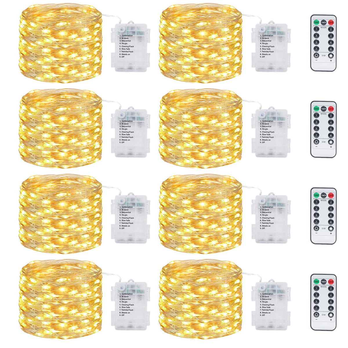 8 Pack Fairy Lights Battery Operated With Remote, Each 39Ft 120Led Battery Powered String Lights With Timer, 8 Modes Waterproof Twinkle Christmas Lights For Bedroom Party Indoor Mason, Warm White