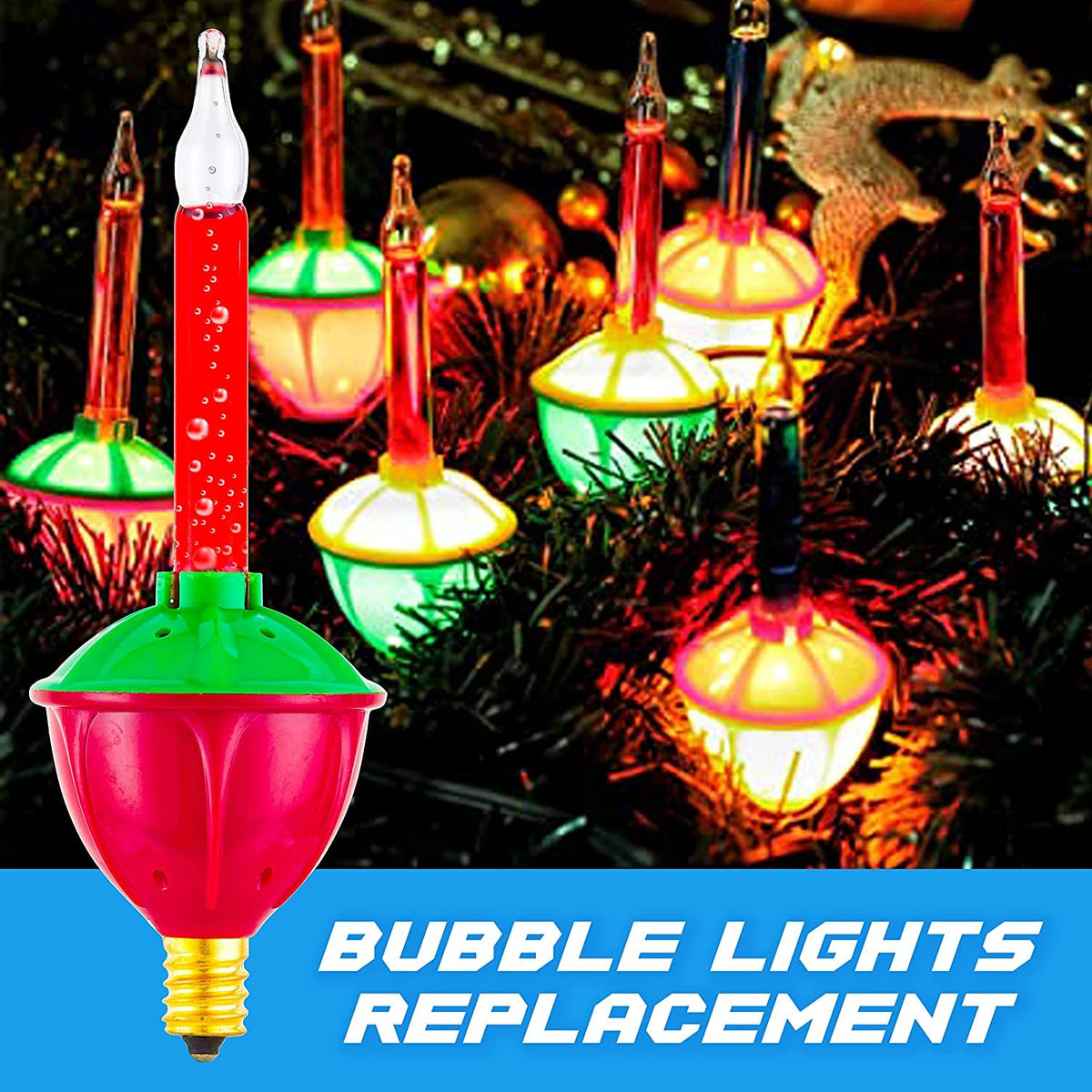 Q: What are the benefits of using bubble lights for Christmas decorations?A: Bubble lights add artistic lighting effects to your Christmas tree or outdoor decorations. They are energy-efficient, using only 5 watts, and have a longer lifespan compared to traditional incandescent bulbs.