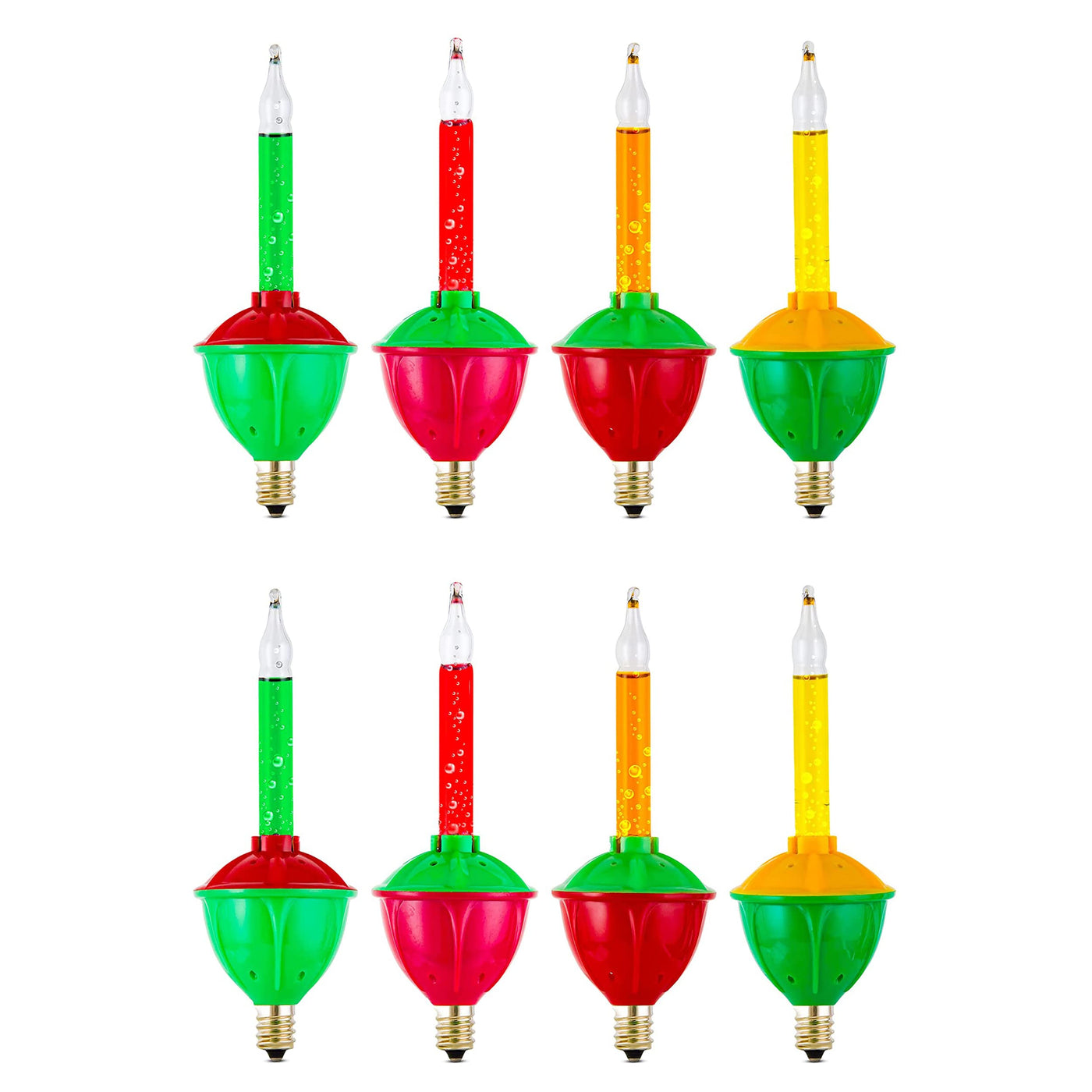 8 Pack Replacement Bubble Lights Bulbs Red Green Yellow Orange Bubble Lights For Christmas Tree Fluid Light C7/E12 Candelabra Base Christmas Light Bulbs Traditional Bubble Light - Bubbler Lights Bulbs