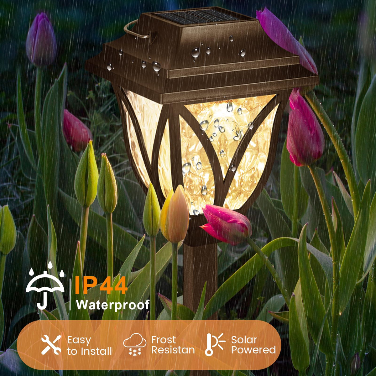 Q: Are these solar lights waterproof and weather-resistant?A: Yes, the solar lights are designed to be waterproof and can withstand various weather conditions, including rain and snow, ensuring reliable performance throughout the year.