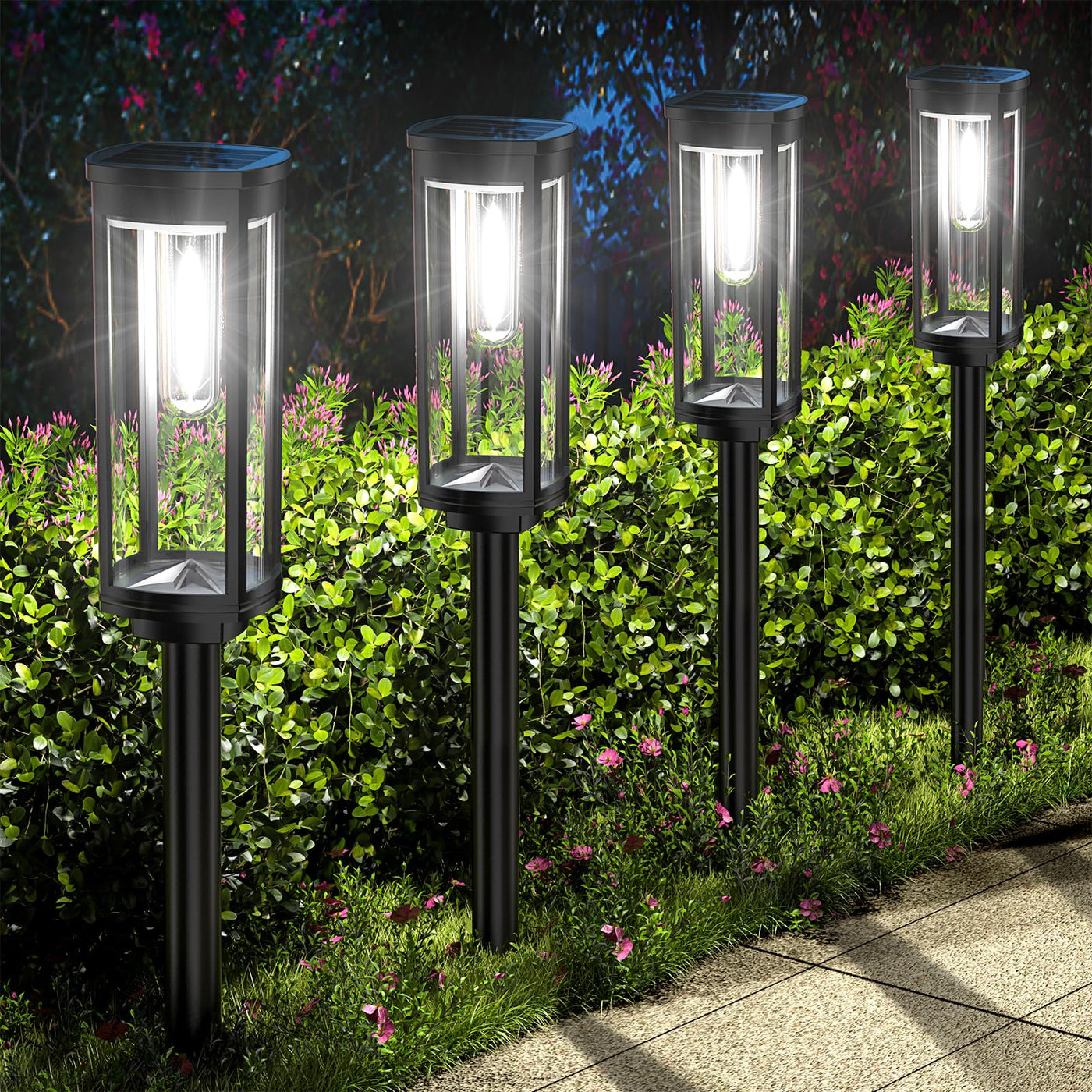 High Brightness And Long-Lasting Lighting: Enjoy High Brightness And Long-Lasting Lighting With The Latest Technology And Longer Filaments And Bulbs In The Outdoor Solar Sidewalk Light. It Is Brighter Than Other Solar Pathway Lights And Equipped With A Large-Capacity Rechargeable Battery That Provides Up To 14 Hours Of Lighting Time - Enough To Illuminate An Entire Night. Unique And Minimalist Design: The Upgraded Solar Outdoor Light Boasts A Unique And Minimalist Design That Blends Classic And Modern Styles. It Features A High-Quality Clear Shade And A Classic Vintage Filament, Which Not Only Enhances Its Appearance But Also Reduces Brightness Decay. This Solar Pathway Light Are Ideal For Adding Beauty To Your Garden Landscape And Guiding You Home At Night. Dusk-To-Dawn: Versatile And Convenient, The Solar Pathway Light Comes With An Automatic On/Off Function That Turns The Light On At Dusk And Off At Dawn. This Feature Eliminates The Need For Manual Intervention, Providing Hassle-Free And Worry-Free Illumination For A Variety Of Outdoor Settings. Energy-Efficient And 100% Solar Powered: These Solar Path Lights Are 100% Solar-Powered And Energy-Efficient, Thanks To A High-Conversion Monocrystalline Silicon Solar Panel That Converts Sunlight Into Electricity. It Takes Only 4-6 Hours Of Direct Sunlight To Fully Charge The Pathway Light. With No Need For Electricity, There Are No Associated Bills. Easy Installation: The Solar Outdoor Light Requires No Hardwiring Or Tools For Installation, Making It Easy To Set Up. With Its Sleek Design, It Can Be Used In Various Outdoor Spaces Such As Gardens, Yards, Walkways, And Driveways. Enhance The Beauty And Functionality Of Your Outdoor Area With The Warm And Inviting Ambiance Created By These Solar Lights