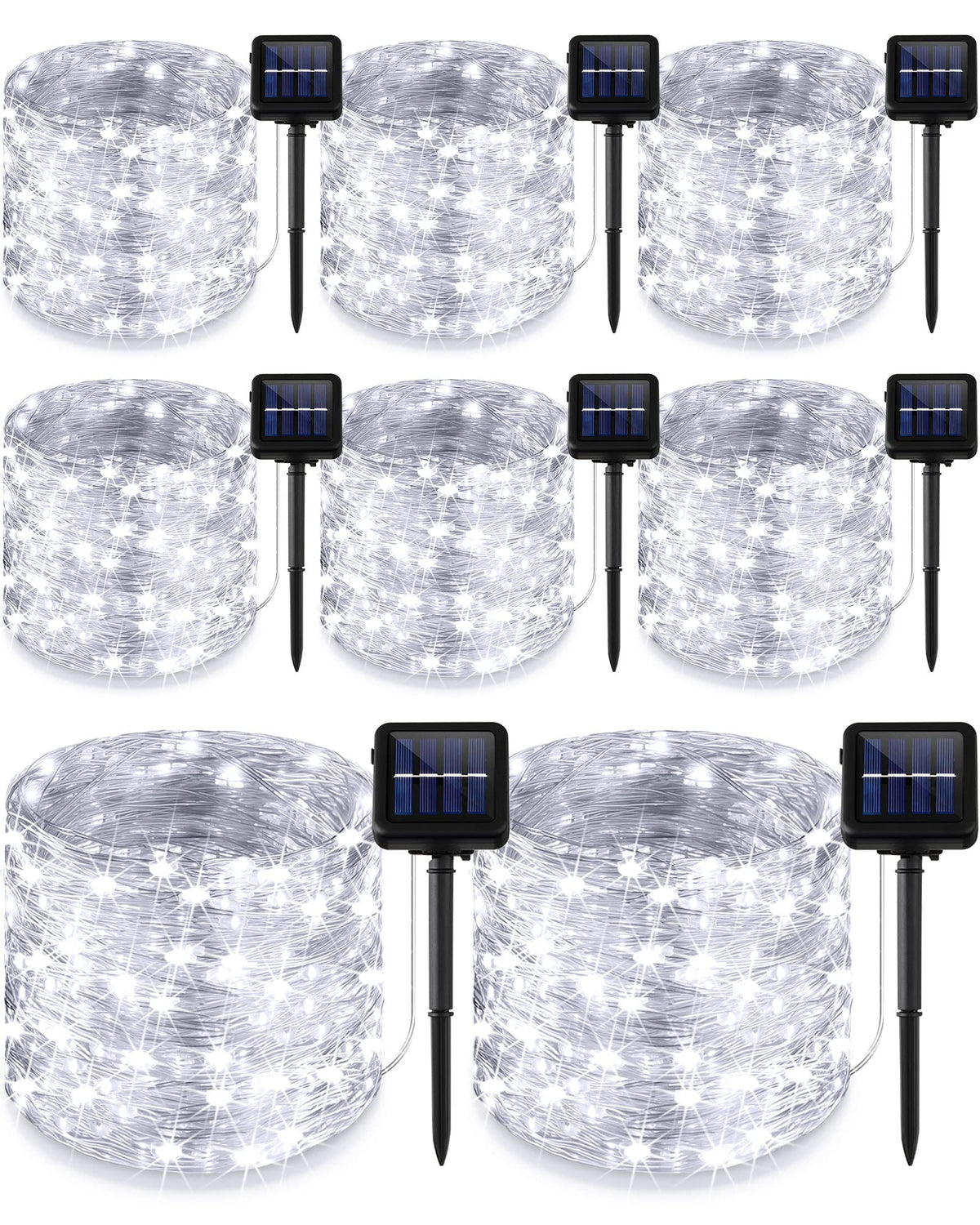 8 Pack Solar String Lights Outdoor Waterproof Each 240 Led 78Ft Solar Fairy Lights Outdoor 8 Mode Led Solar Outdoor Lights Tree Lights Waterproof Copper Wire Lights For Tree Garden Yard(Cool White)