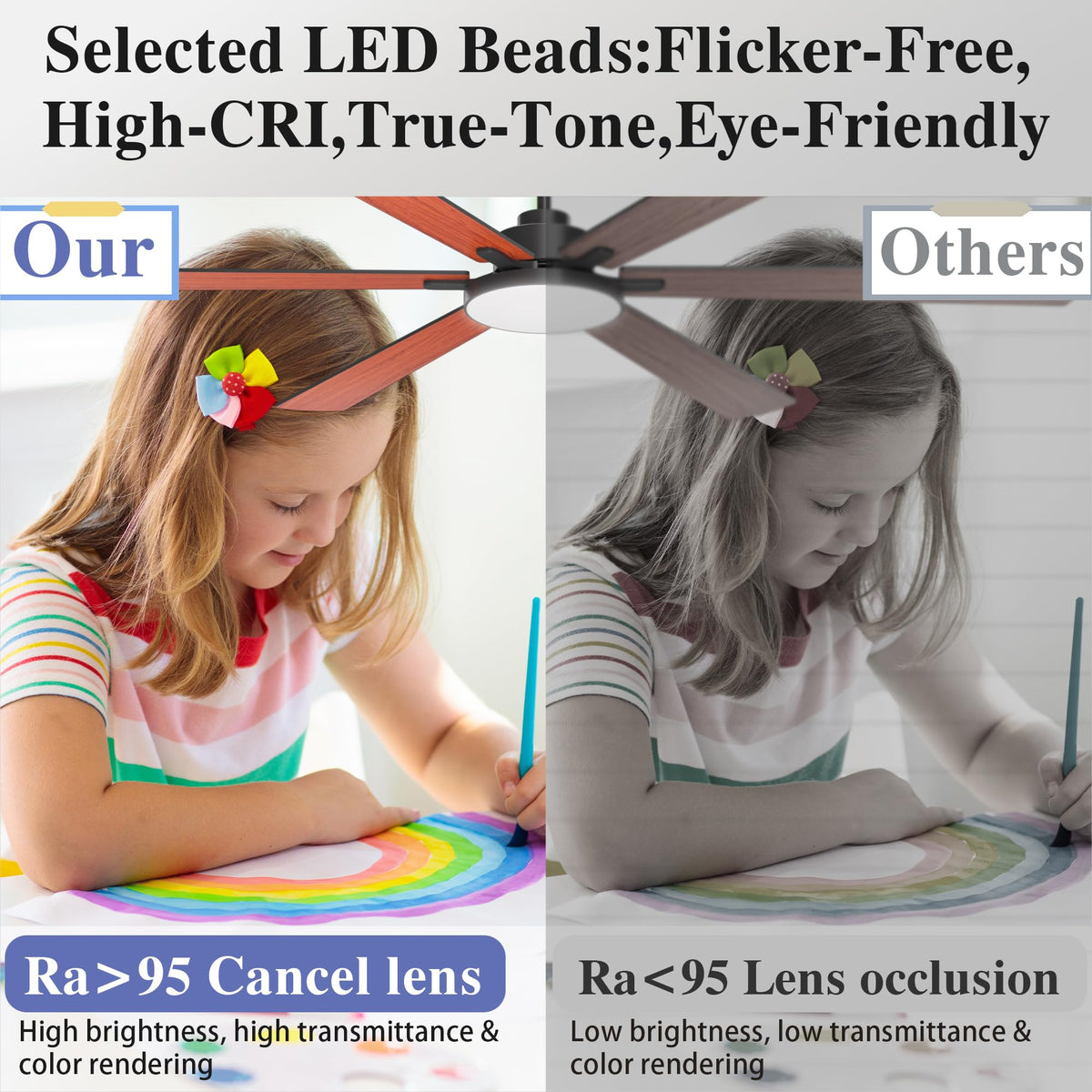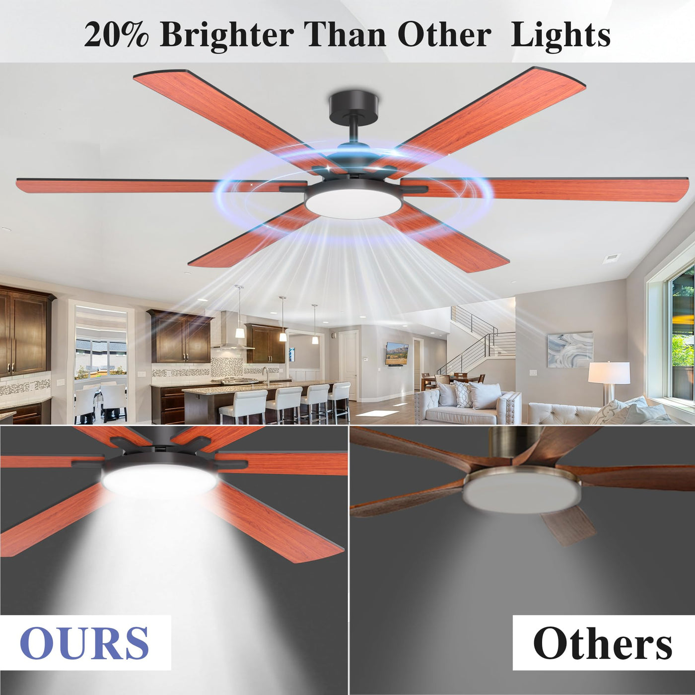 80 inch Ceiling Fans with Lights and Remote Control,Indoor/Outdoor Flush Mount Low Profile Commercial Reversible Dimmable Wood G