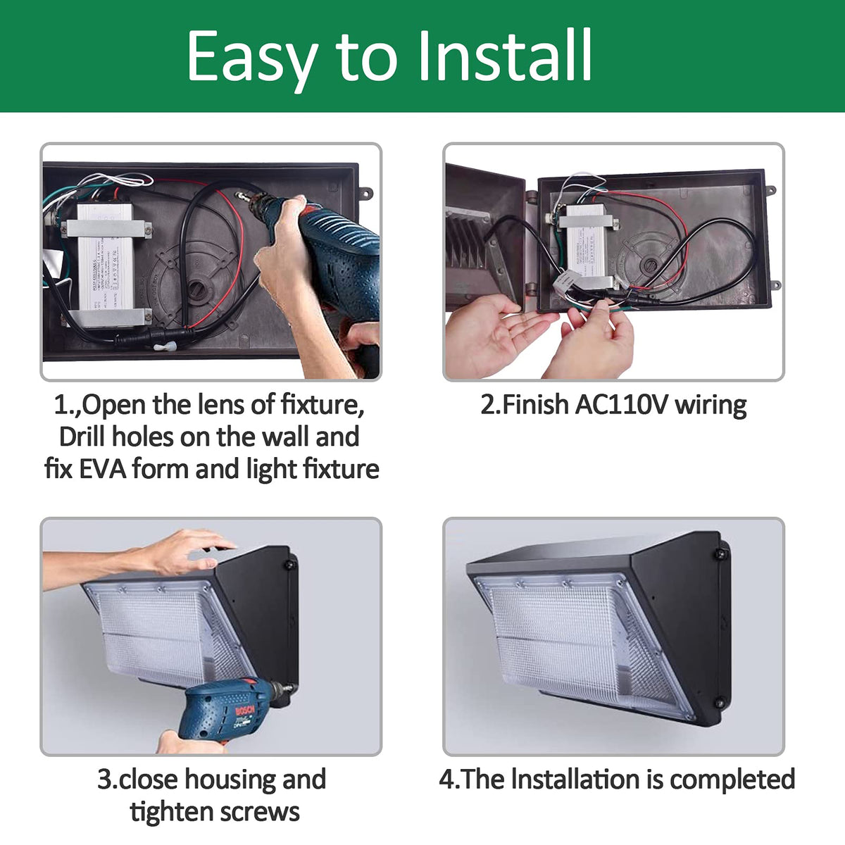 Q: Is installation of the wall pack light difficult?A: No, the commercial-grade design allows for easy surface mounting to your existing junction box, ensuring a straightforward installation process.
