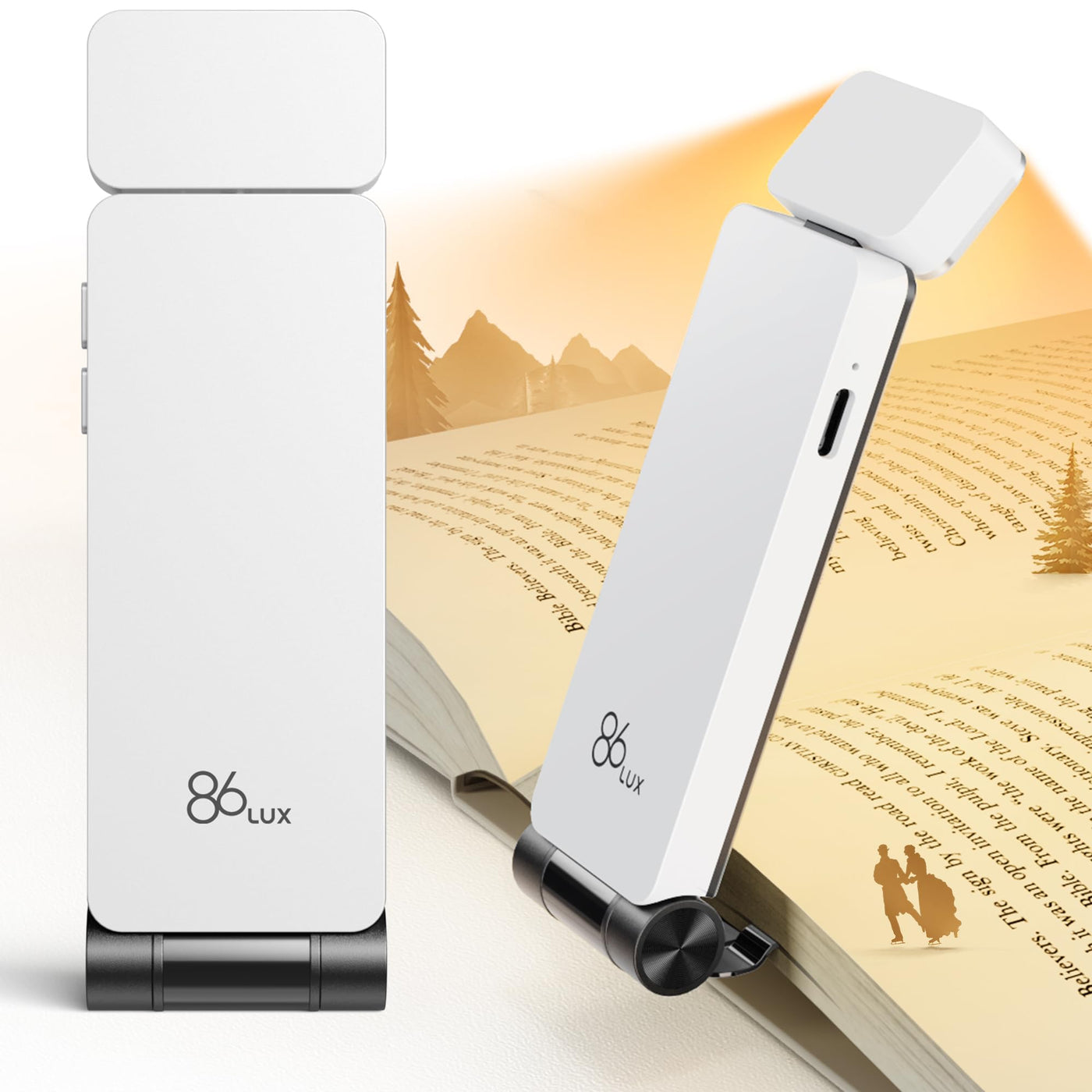 86Lux Reading Light, Rechargeable Book Light For Reading In Bed, Ultralight Clip-On Led Bookmark Lamp With 3 Amber Colors & Stepless Dimming For Night Reading For Book Lovers, Kids, White