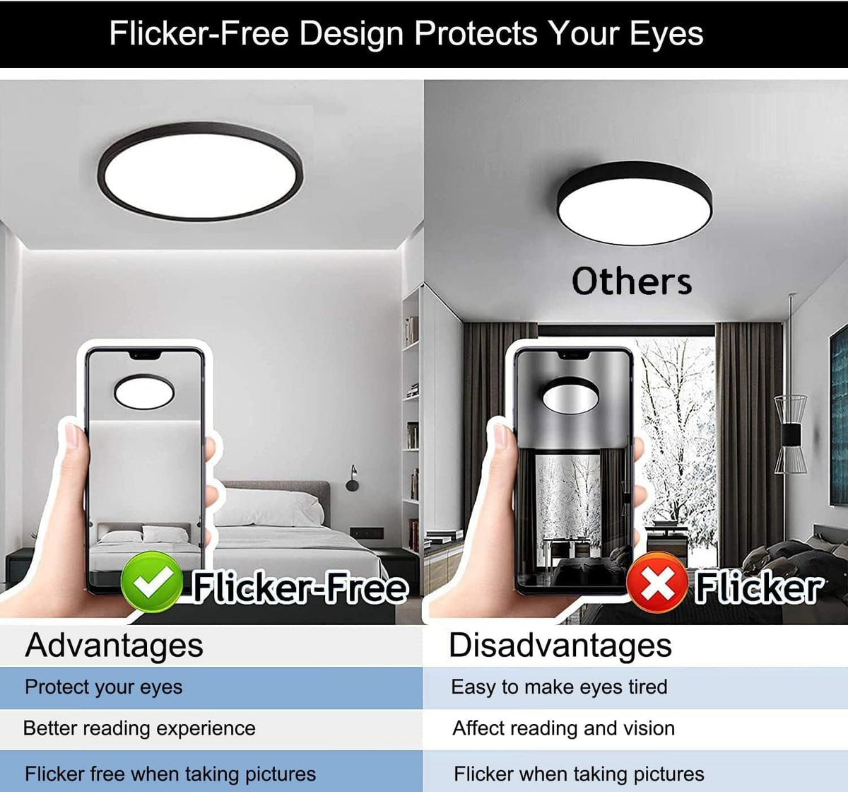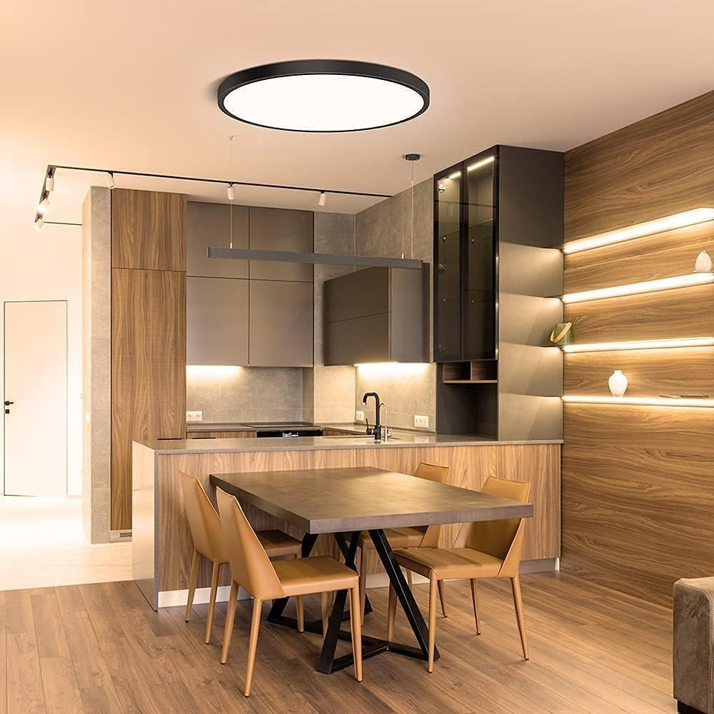12Inch 5CCT+ dimmable LED Celing Lights 28W ?FEATURES: ?3 Color Changeable +dimmable :This flush mount ceiling light features a selectable color temperature feature allows you to choose your preferred light color: warm, cool or daylight (3000K/4000K/5000K). ??5%-100% Dimmable, No Flicker? Smoothly dimming function fit your different needs 5%-100% brightness. With the dimming led chip of top brand, our round black ceiling lighting led is compatible with most of models dimmer. ? High Quality light:Our factory is very professional. The production of lights and lanterns has undergone very strict quality inspections. Every process is strictly inspected by experienced engineers to pass. ? Long Term Usage: As the years go by, LED ceiling light's shell color will not be corrupted or decay by comparing with other metal product's body which is oil brushed or powder coated. Excellent performance of dust proof, easy to clean. Under normal usage of 8 hours per day, lifespan could endure more than 3 years. ?SPECIFICATIONS: ? Power: 28W - 3CCT - Dimmable ? Lamp Body Size: 300*21MM ? Material: ABS ? Voltage: AC85-265V ? Color Rendering Index: 85Ra ? Lumens: 2860LM ? Color Temperature: 3000K~4000K~5000K +Dimmable 5%-100% brightness ? Light Source Life: 50000H ? Working Temperature: -20~+60 ?PACKAGE INCLUDING: ? 4PCS x 28W LED ceiling lights ? 4PCS x Screw package ?Application: ? Bedroom, living room, balcony, corridor, children's room, study room, office, hotel, supermarket ?Precautions: ?Before use led ceiling lights, make sure the lights if Intact.If it is damaged by the ship company, please request a return.