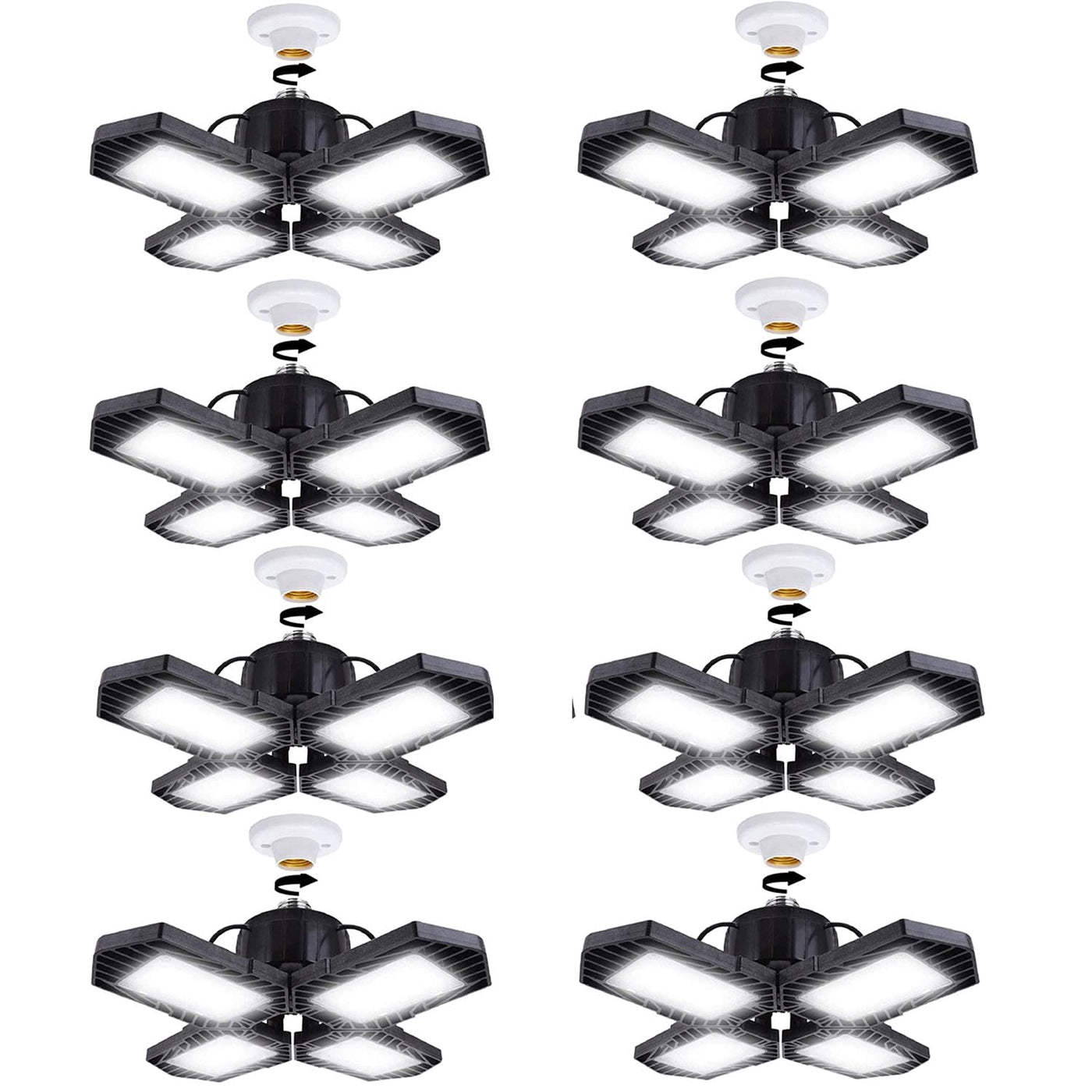 8Pack Led Garage Lights - 100W Deformable, 10000Lm E26 Daylight 6000K Super Bright Adjustable Lights For Warehouses