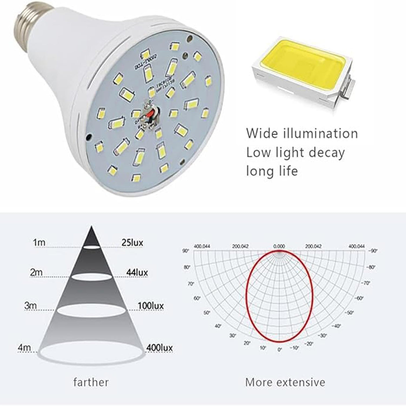 Rechargeable Emergency 15W Led Light Bulb Size:80*128Mm Power: 15W Input Voltage: 120 Volt Ac Mode Lumens: 1500 Lm (100W Equivalent) Light Color: Day White 6000K Emergency Time: 4-5 Hours Charging Time: 8-9 Hours Base: E26 The Emergency Led Bulb Will Stay Bright During Power Outage &Nbsp; How To Use The Rechargeable Led Bulb ? 1.Insert The Bulb Into Any Suitable Bulb Fixture As Regular Led Bulb, Control On / Off By Switch. 2.Screw The Bulb Into Our Cap With Switch And Hook, Control On / Off By Switch On Our Cap. 3.Use Fingers Touch Bulb Base, Control On / Off By Fingers. 4.Use A Wet Tissue Or Wet Cloth. How To Test Emergency Mode At Home If No Power Outage ? Way 1: Screw Our Emergency Led Light Into Any E26 Fixture And Plug Into 120 Volt Outlet, Switch On The Bulb, Cut Off Main Breaker, The Bulb Will Stay On, Switch Off, It Will Be Off. Way 2: Screw Our Emergency Led Light Into Any E26 Fixture, Plug Out, Use A Wet Cloth Or Wet Tissue Connect The Prongs Of The Plug, Our Bulb Will Be On. Application 1.Battery Operated Light Bulb For Home, Office, Basement, Garage, Shop Light, Porch, Workshop. 2.Outdoor Camping, Hiking, Work Light. 3.Emergency Backup For Natural Disaster. 4.Used As Magic Trick Bulb, Party Bulbs.