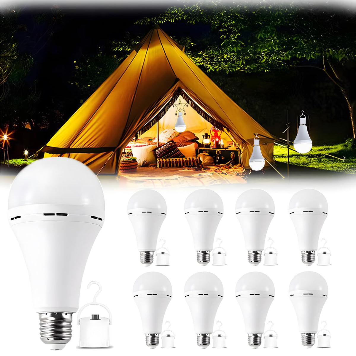 8Pack White Rechargeable Emergency 15W Led Light Bulb,Stay Lights Up When Power Failure,100W Equivalent,1500Lm,White Light 6000K