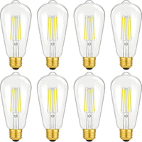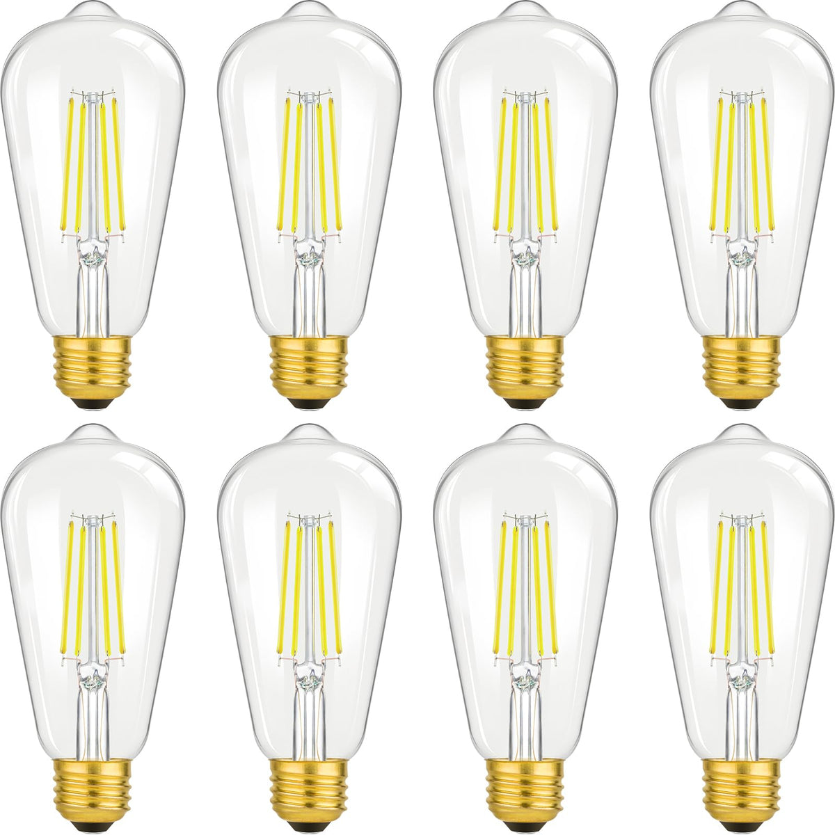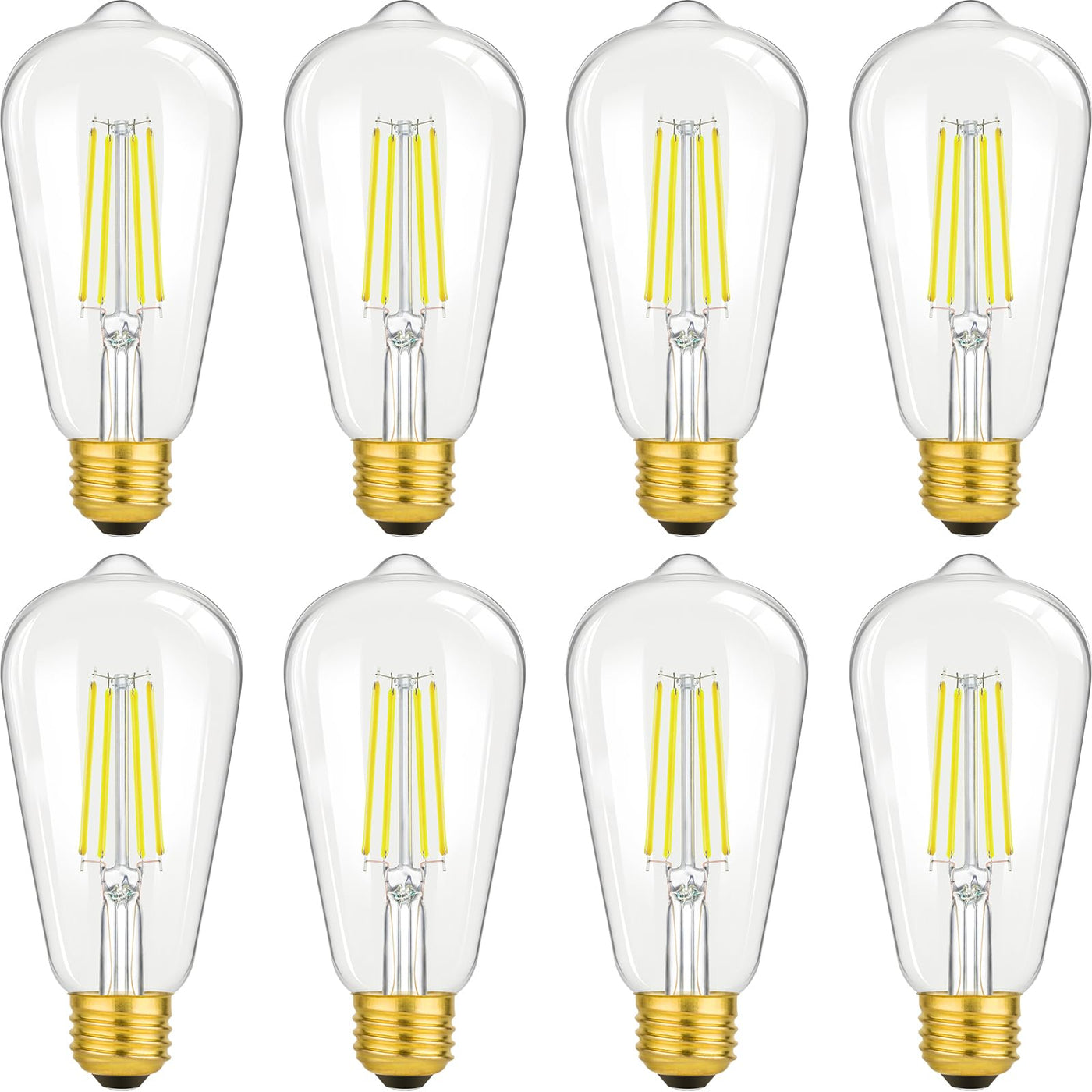 8W Vintage Led Edison Light Bulbs 100W Incandescent Equivalent, 1400Lm, E26 Base Led Filament Bulb, 5000K Daylight White, Cri 90+, St64 Antique Clear Glass For Reading, Patio, Non-Dimmable, 8-Pack