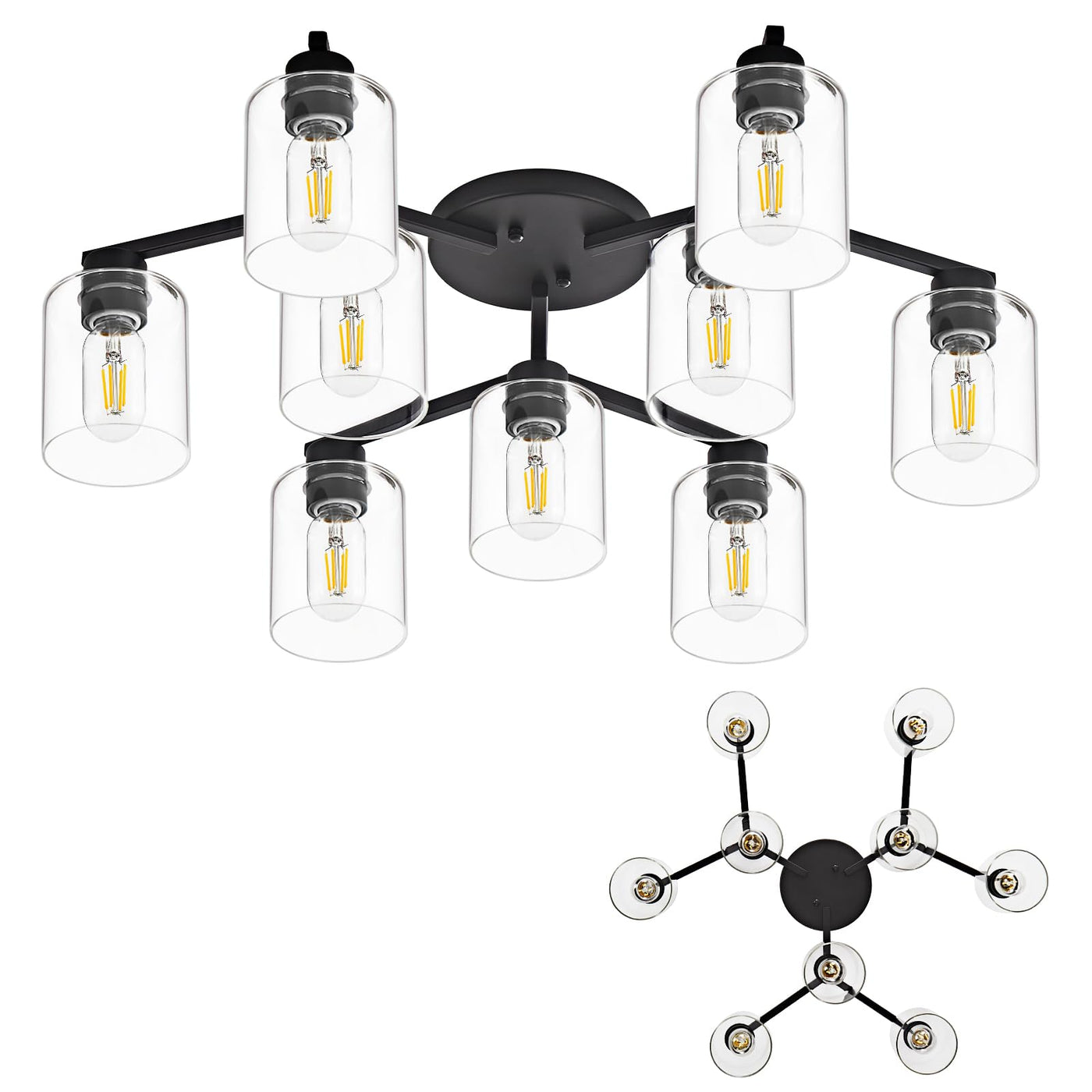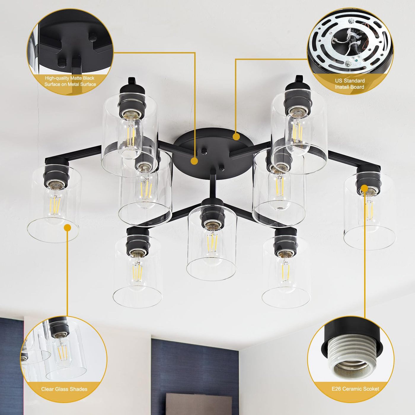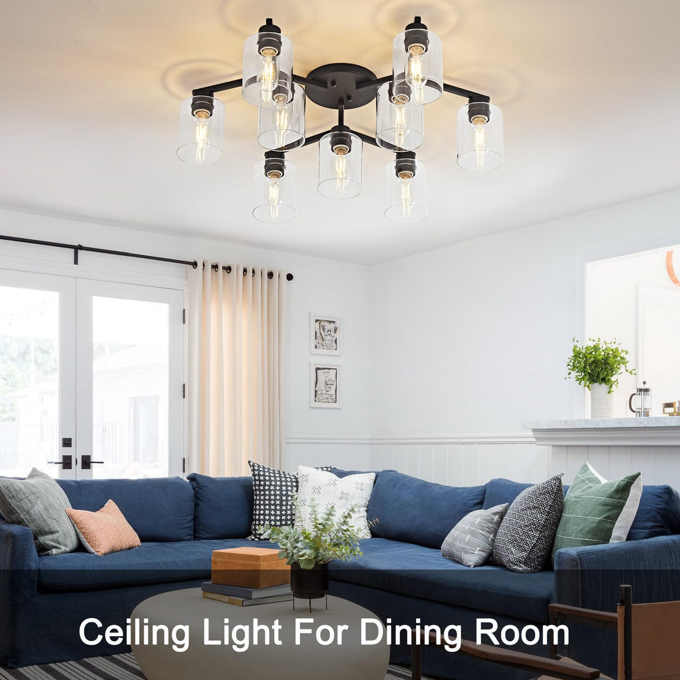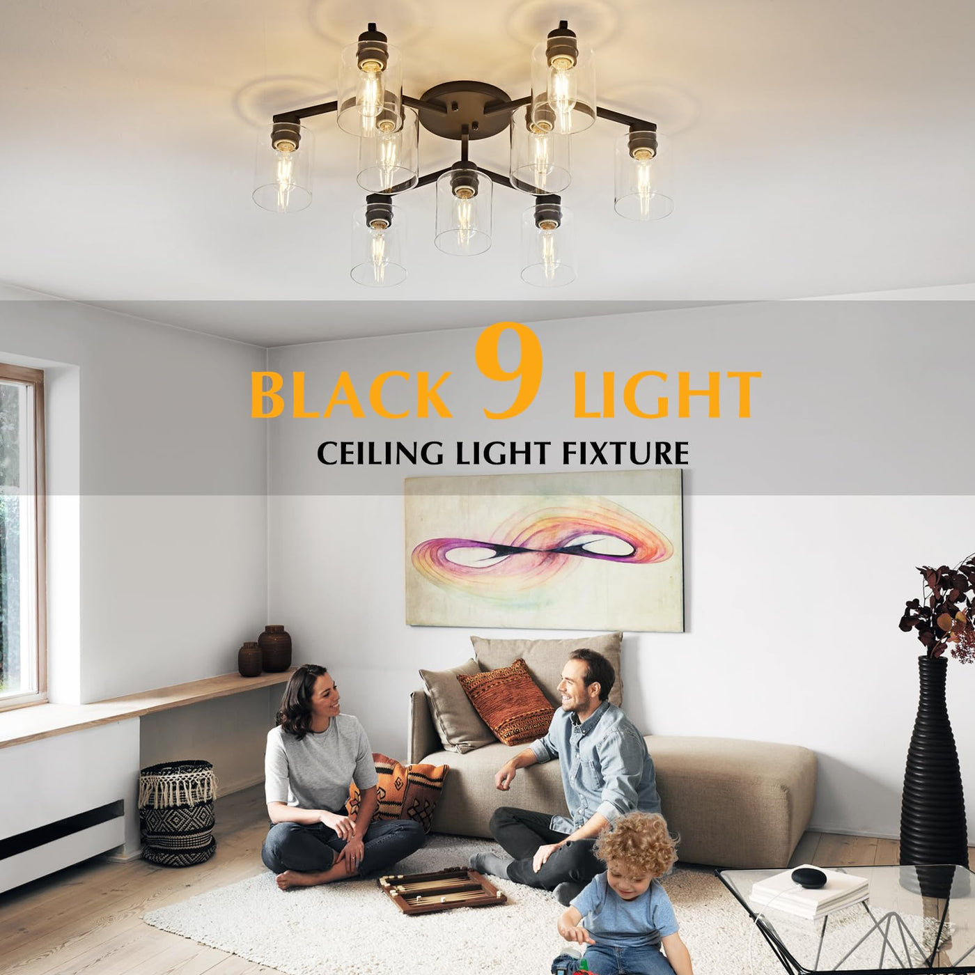 9 Light Kitchen Lighting Fixtures Ceiling Black Semi Flush Mount Ceiling Light Fixture Large Living Room Lighting Cieling Lamps For Dining Room Living Room Light Fixture With Clear Glass Shades