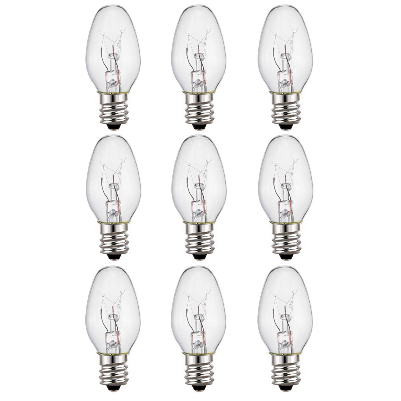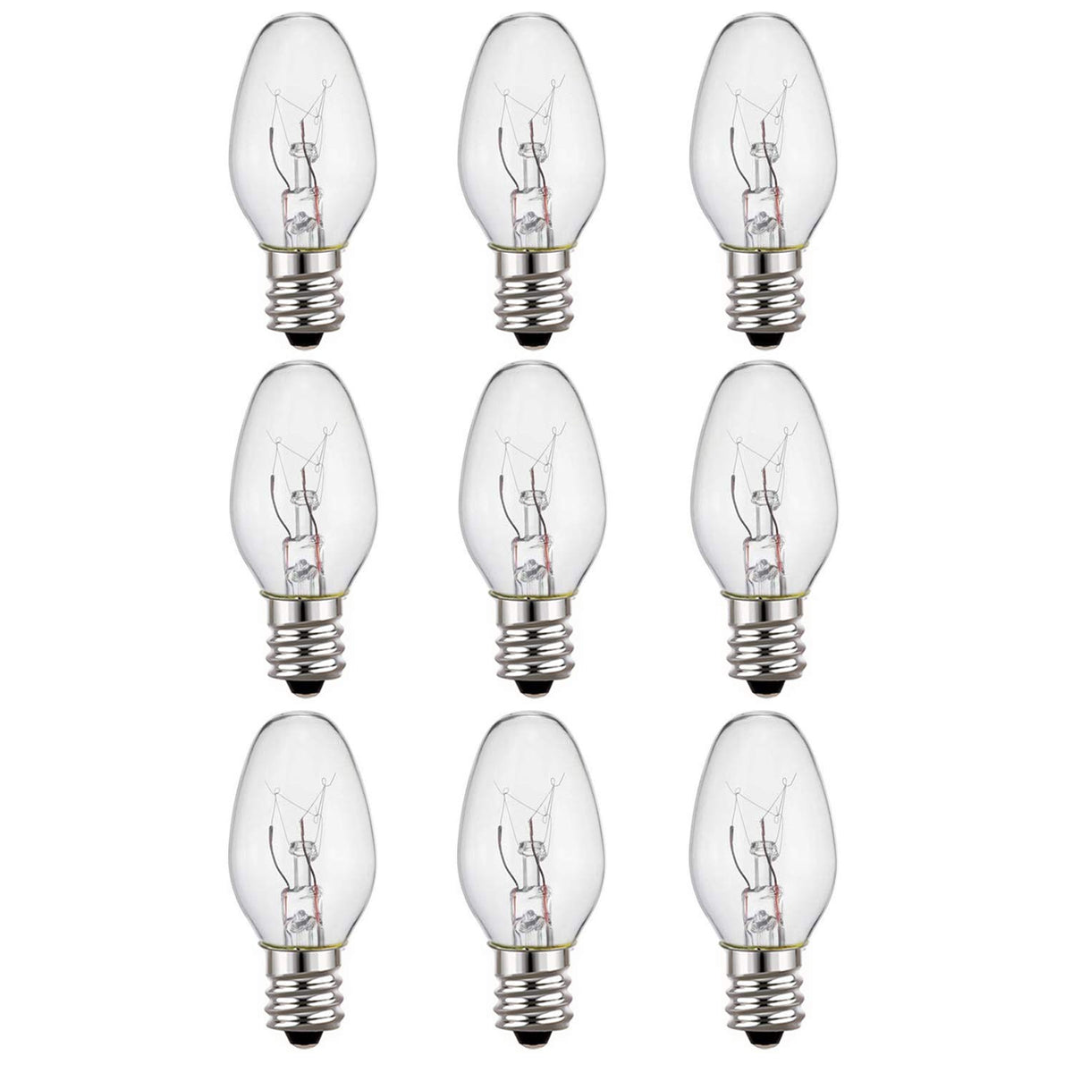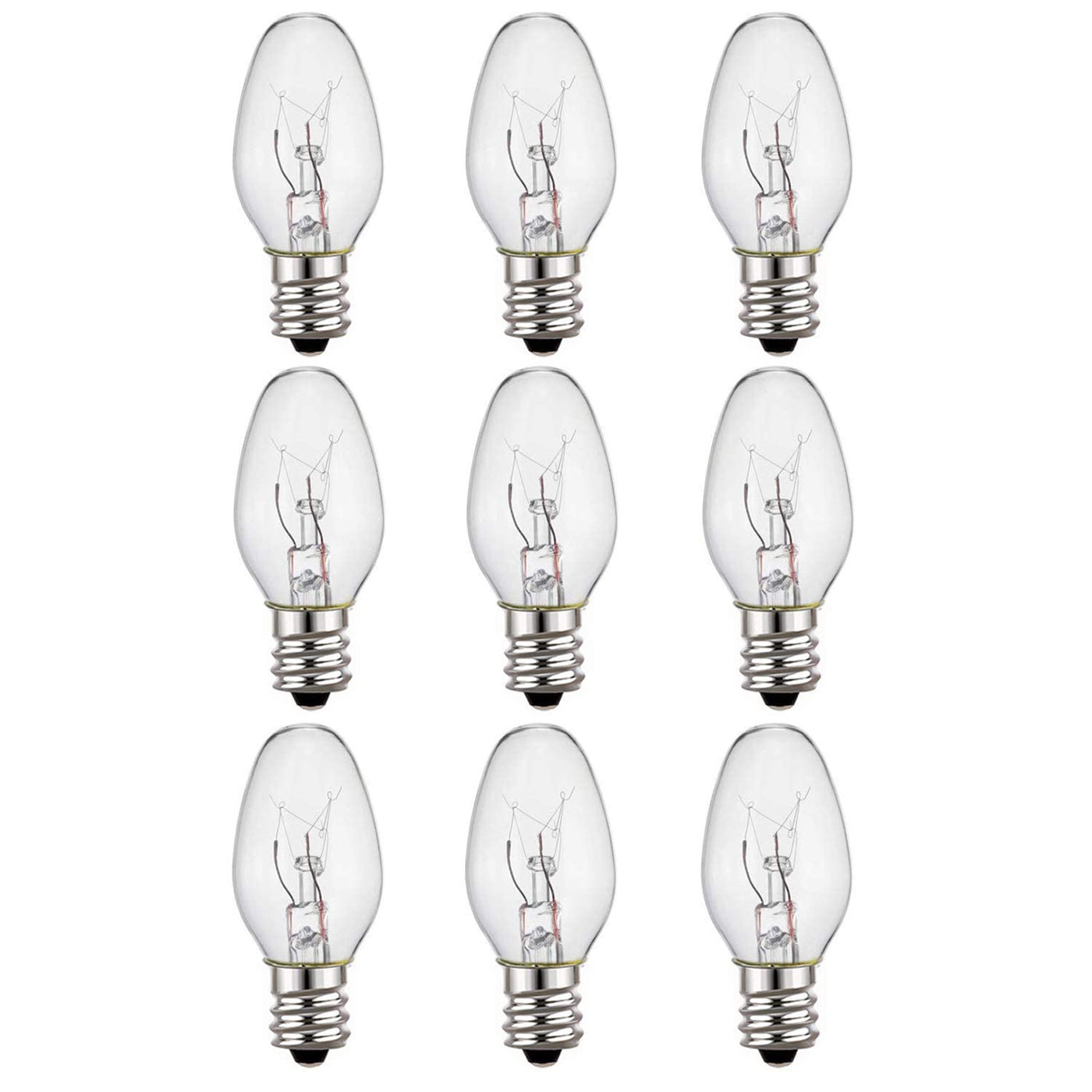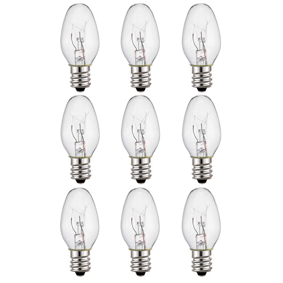 9-Pack,7 Watt Salt Lamps And Night Light Replacement Bulbs, Crystal Clear Glass,C7/7 Watt/120 V/45 Lumen,E12 Candelabra Base Long Life Bulbs