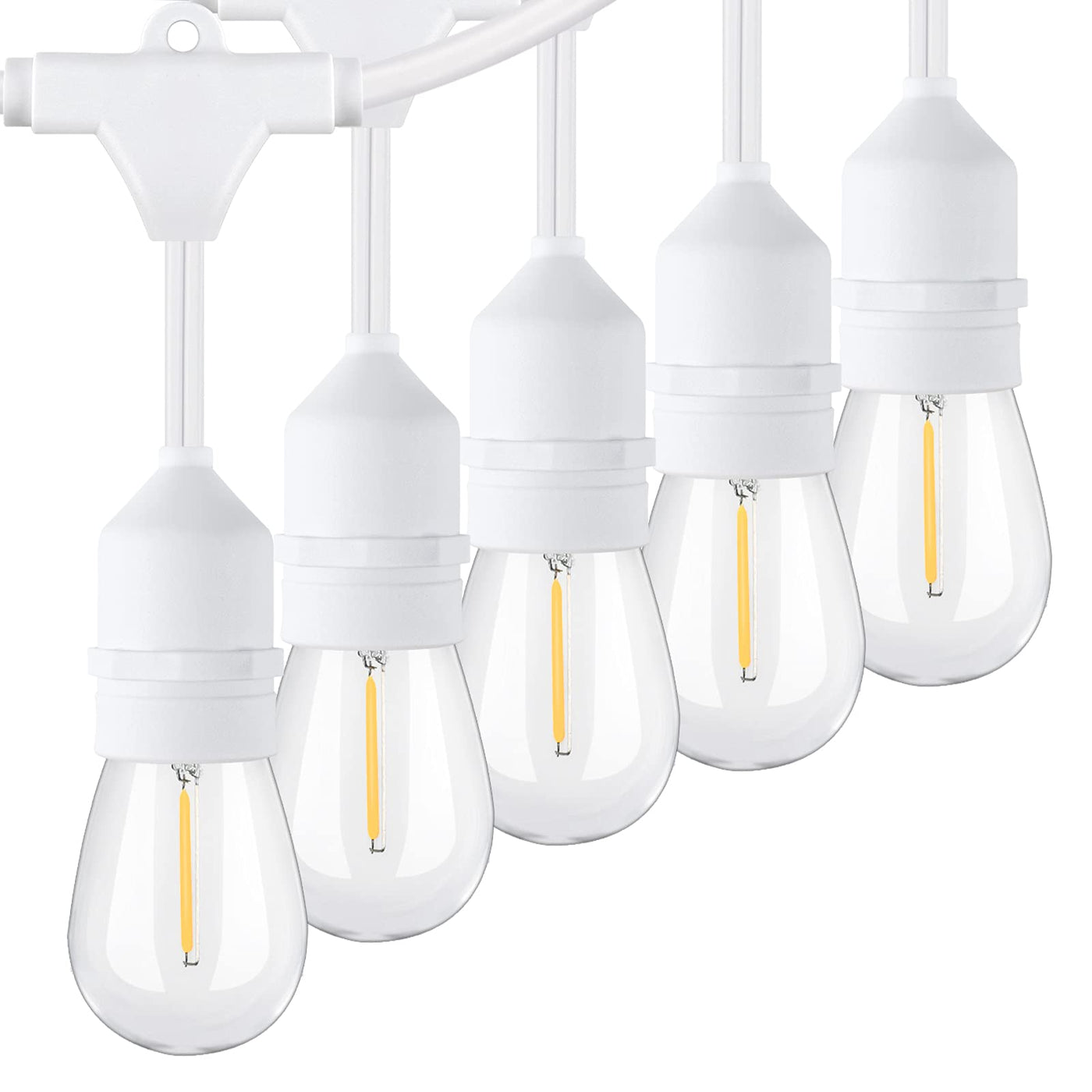 96Ft(48?2) Outdoor String Lights, Commercial Grade Heavy Duty White Wire Patio Light With Dimmable S14 Shatterproof Led Bulbs, L