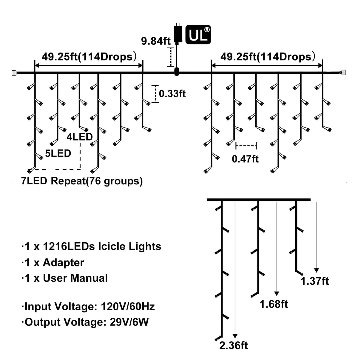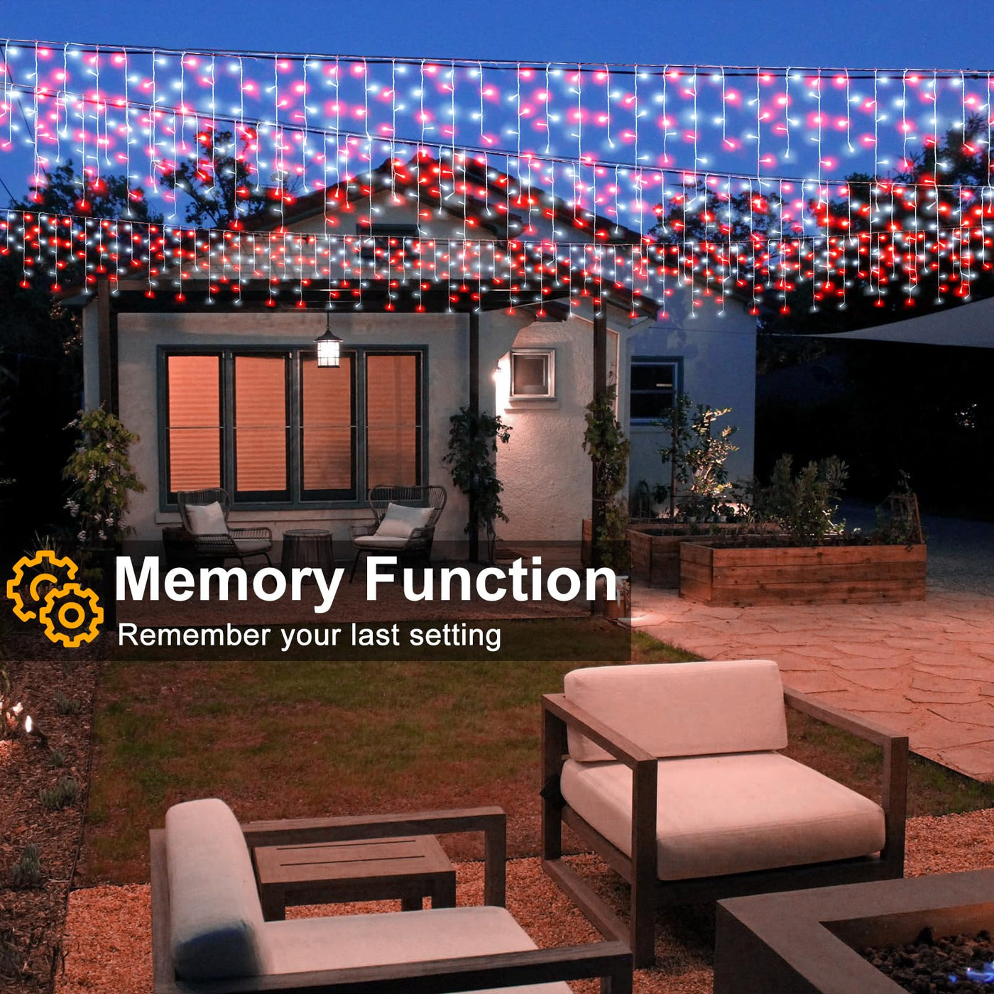 99Ft Red And White Christmas Lights 1216 Led Icicle Lights For Outside Clear Wire Twinkle Light With 8 Modes Timer Waterproof For House Window Party Tree Holiday Patio Yard Home Decoration