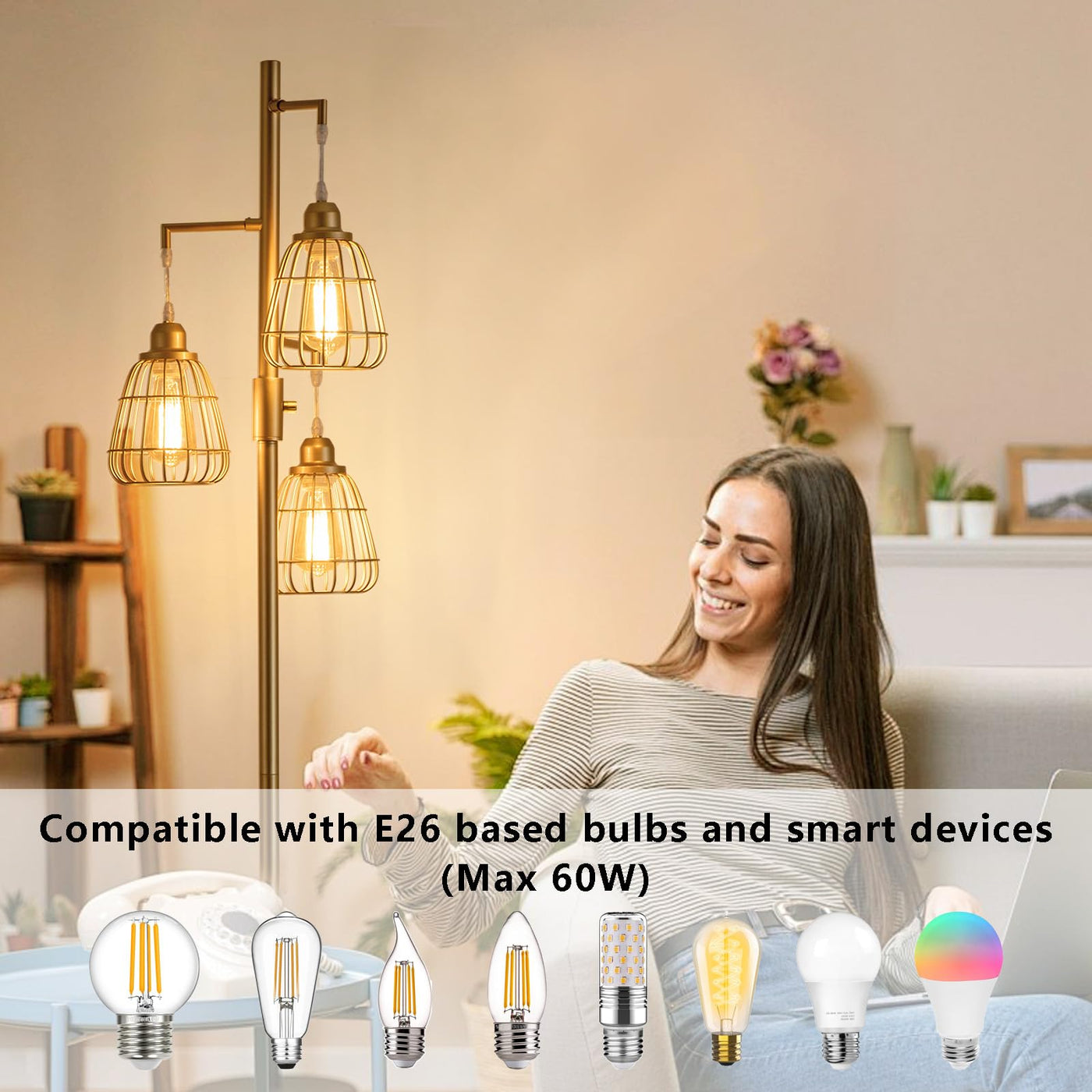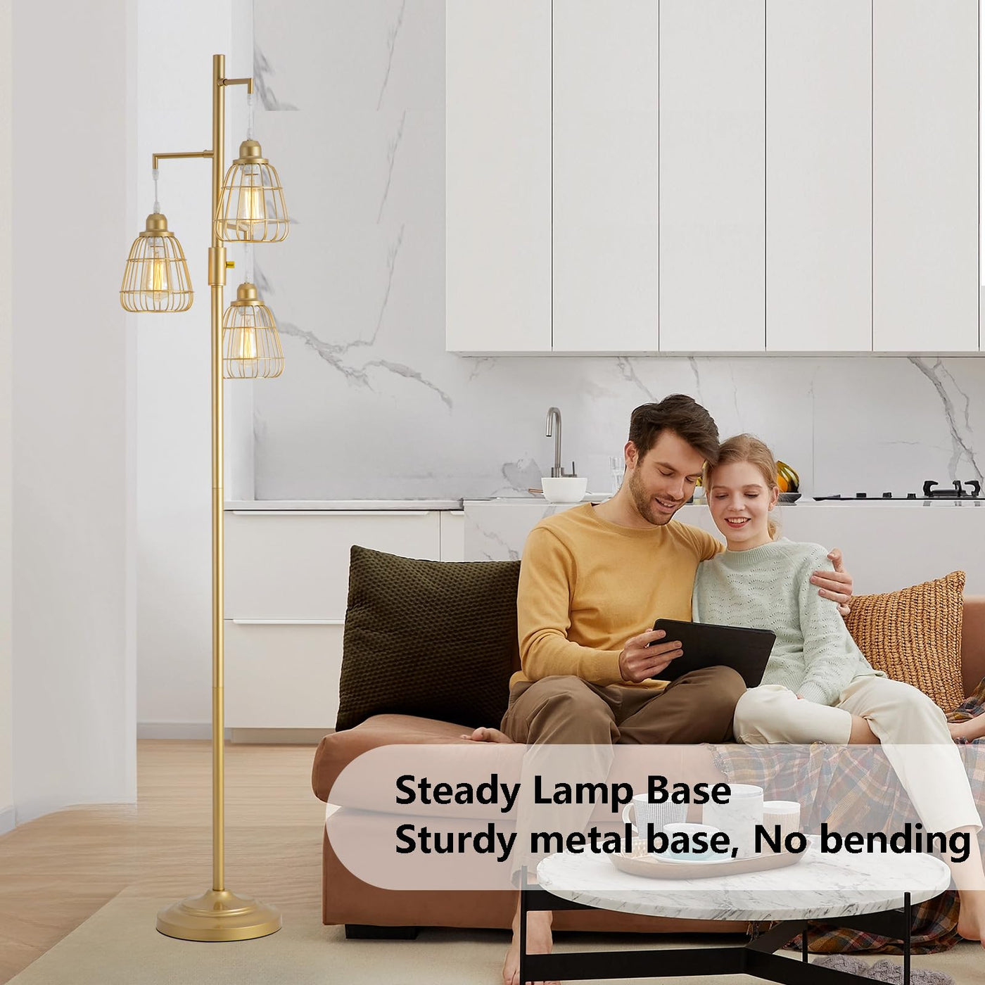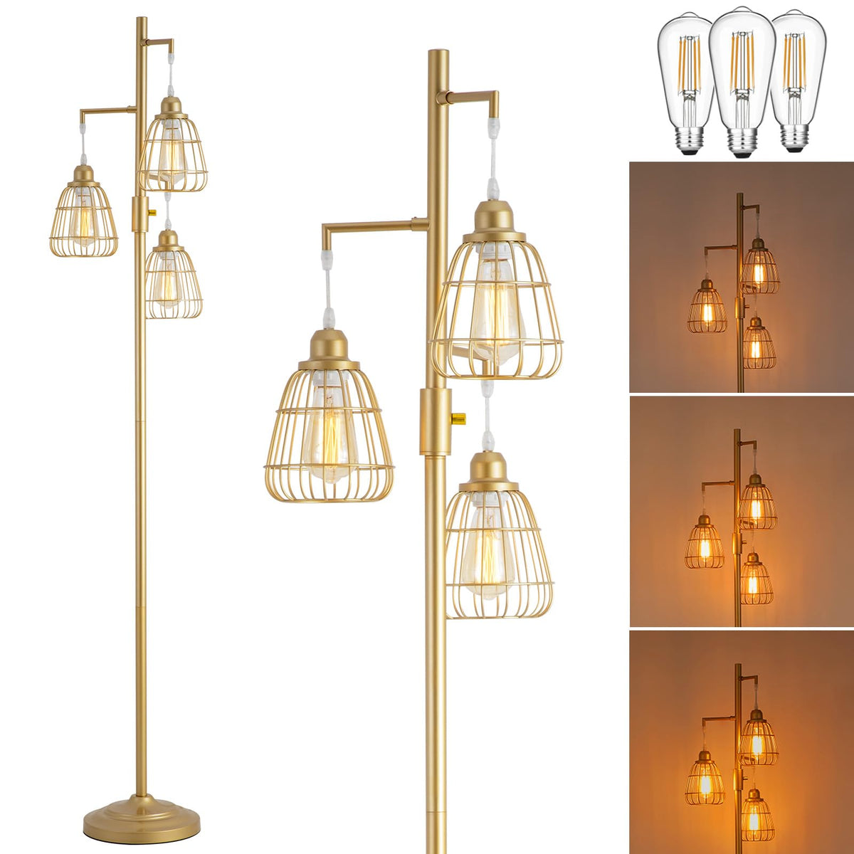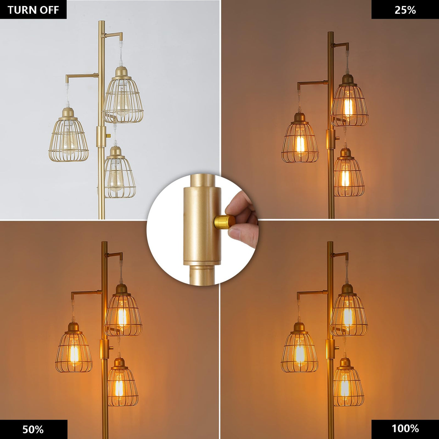 9Mmml Gold Dimmable Floor Lamp,Industrial Farmhouse Tall Standing Floor Lamp For Living Room, Bedroom, Corner,Office,Gold 3 Tear