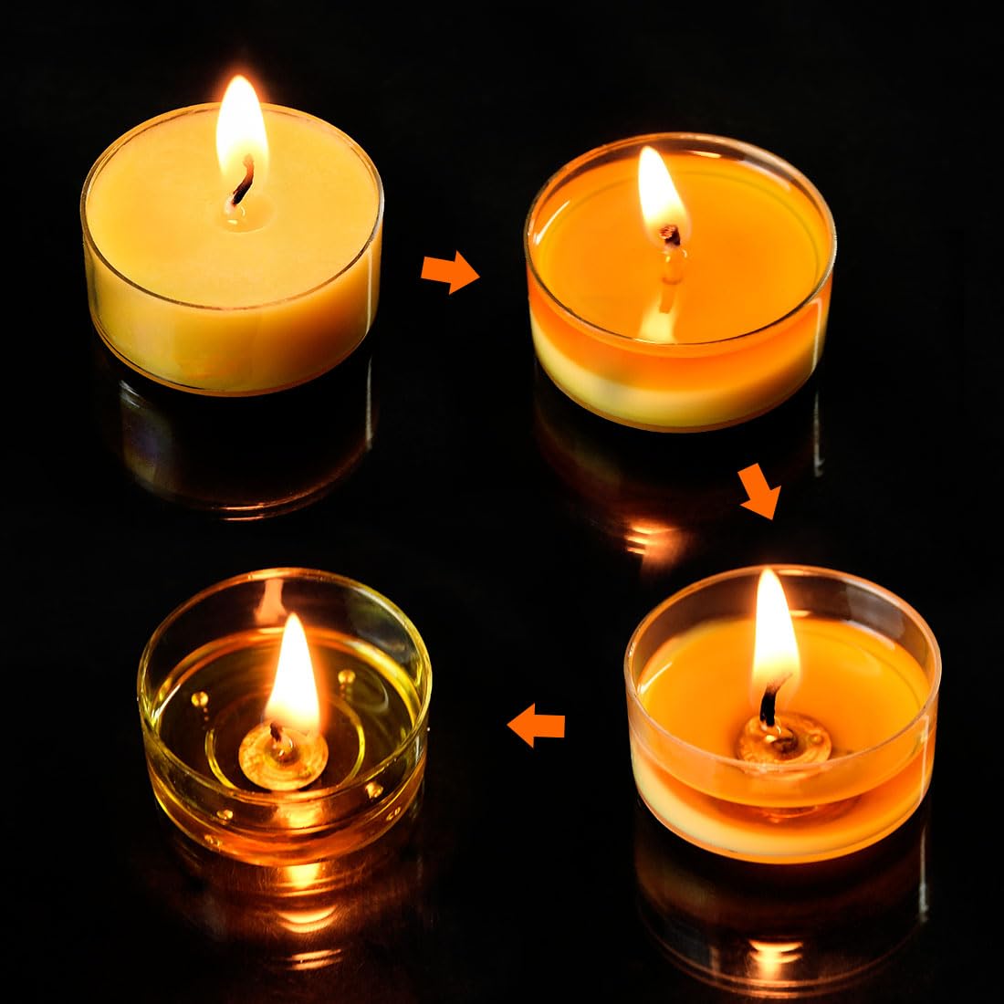 Q: How long do these beeswax tealight candles burn?A: Each beeswax tealight candle burns for more than 4 hours, providing a longer-lasting alternative compared to traditional paraffin candles.