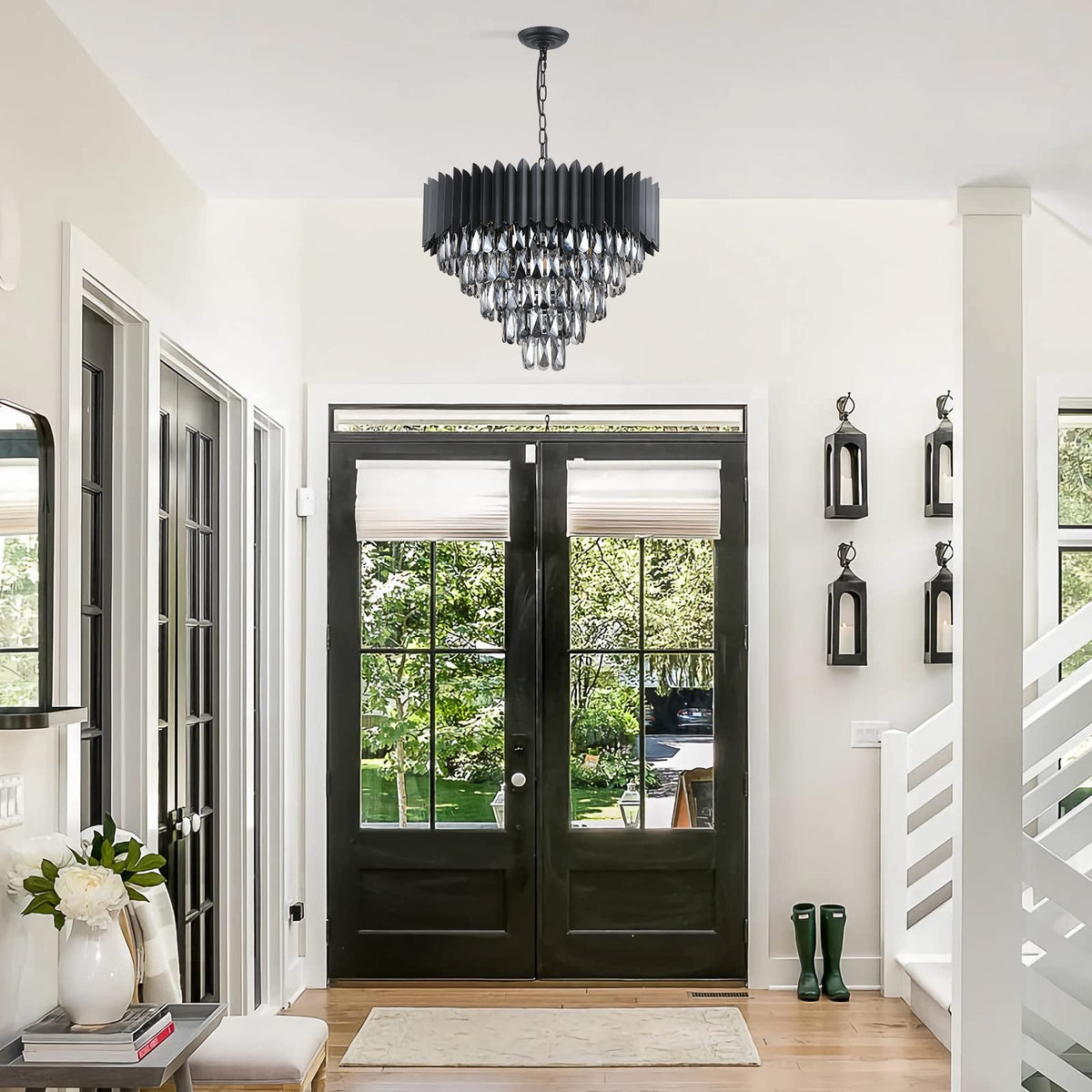 Q: What materials are used in this chandelier?A: This chandelier features a premium black metal frame and high-grade K9 crystals. These materials contribute to its vintage and luxury appearance.