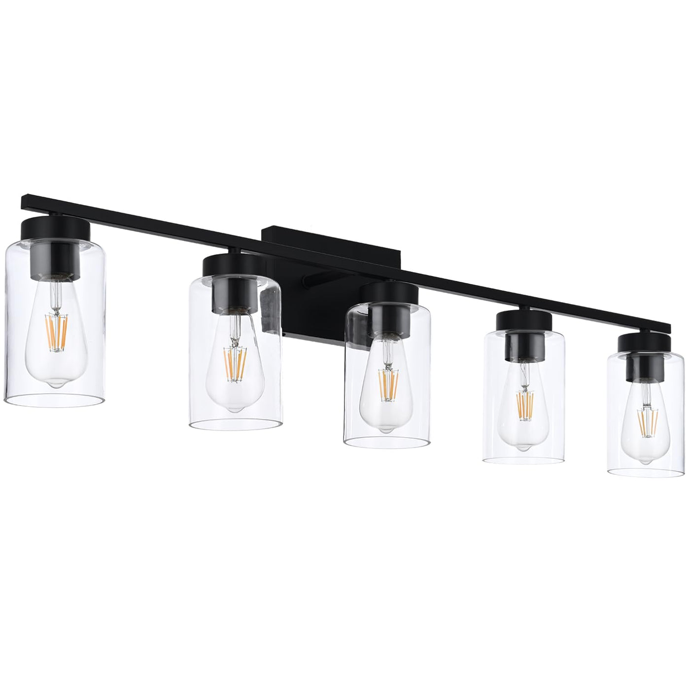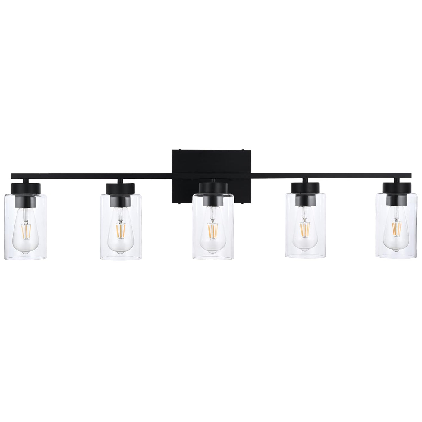 A1A9 5 Light Bathroom Vanity Light Fixtures, Matte Black Modern Wall Lights With Clear Glass Shade, Vintage Wall Sconce Lighting