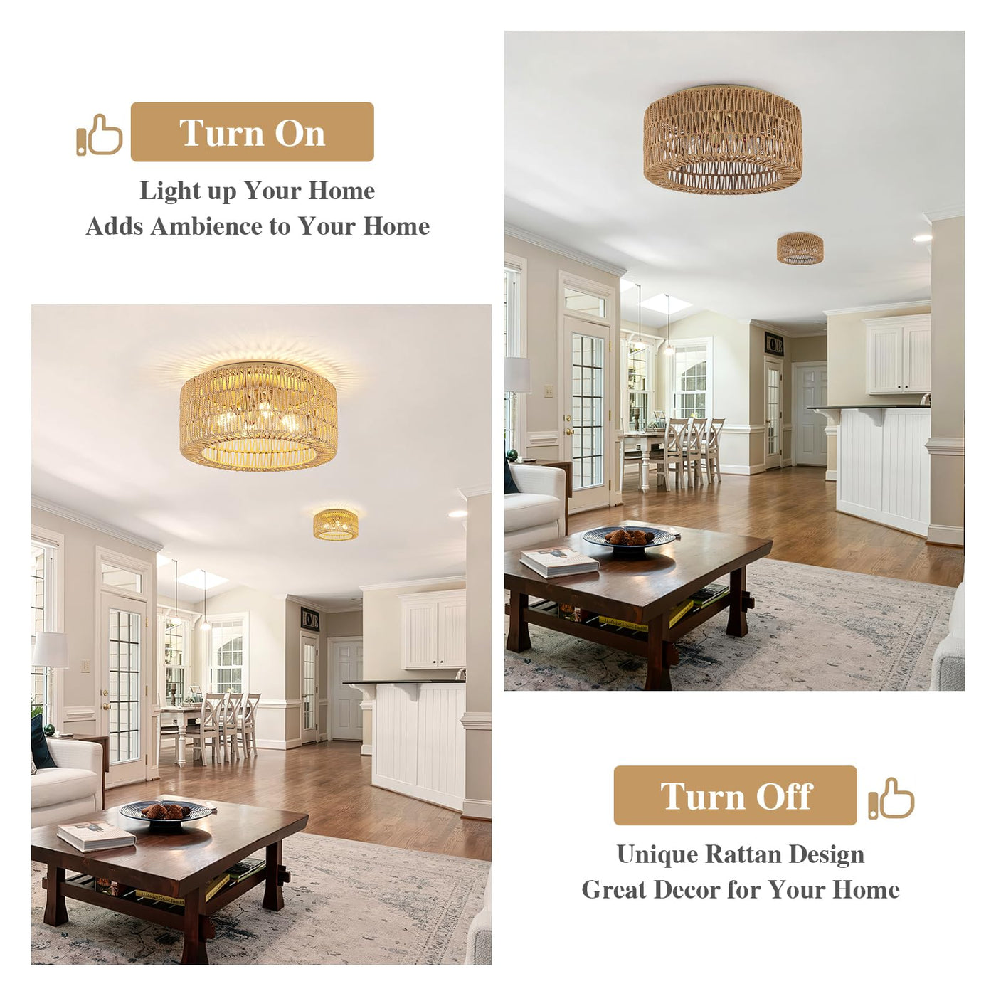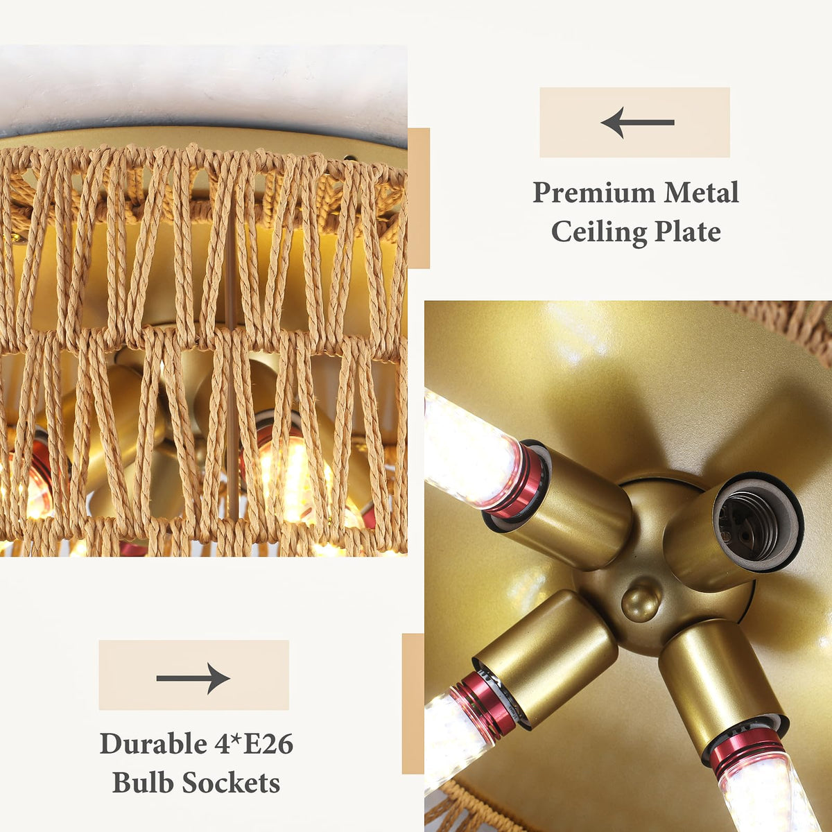 Abeajat Rattan Light Fixtures Ceiling Mount,4-Lights Boho Flush Mount Ceiling Light With Hand-Woven Shade, 18''Rattan Farmhouse