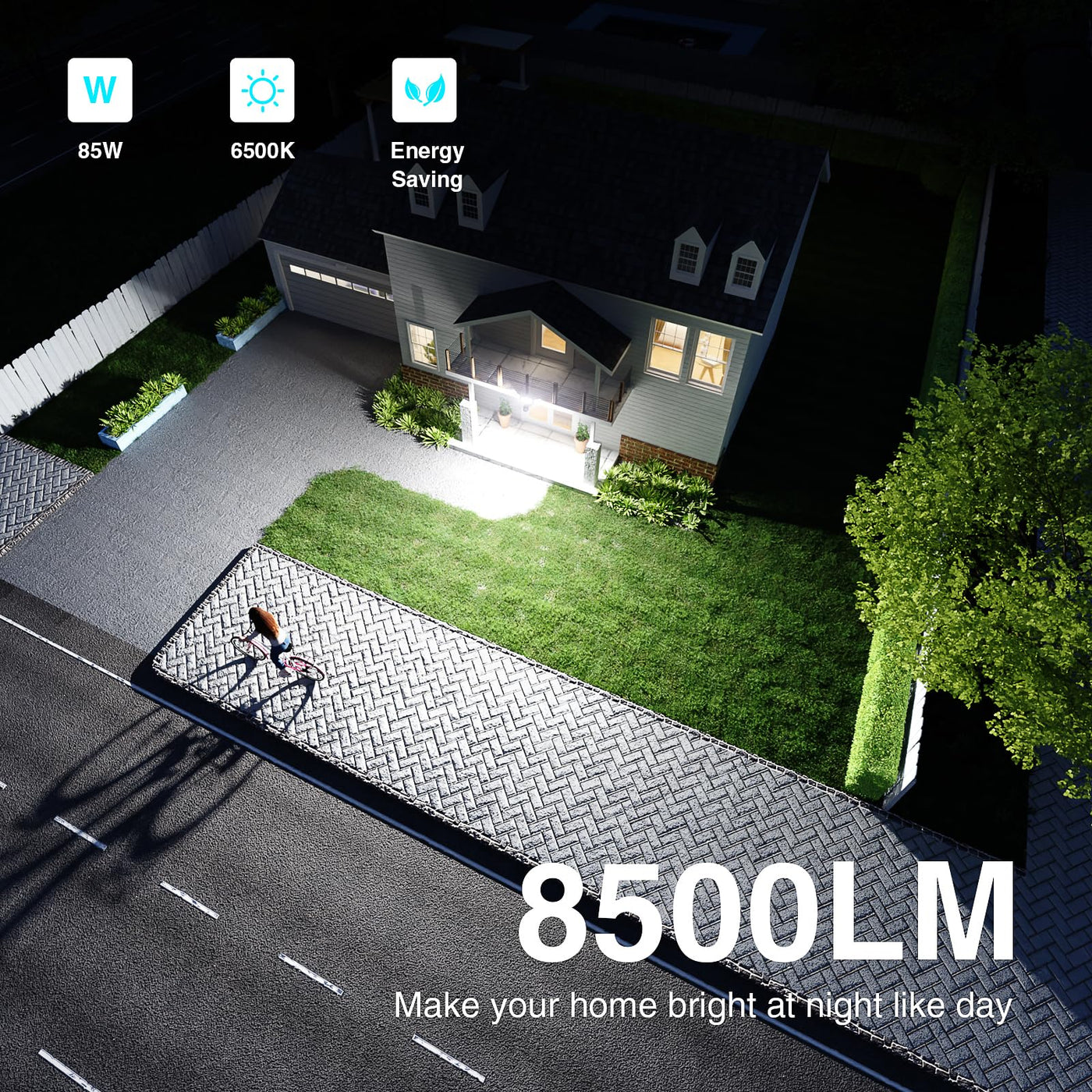 - **High Brightness & Energy Efficiency**: Equipped with 84 premium LED beads, this flood light delivers an impressive output of 85W and 8500 Lumens at a crisp 6500K color temperature, ensuring your yard, garage, or garden is brightly illuminated while saving up to 88% on your electricity bill.