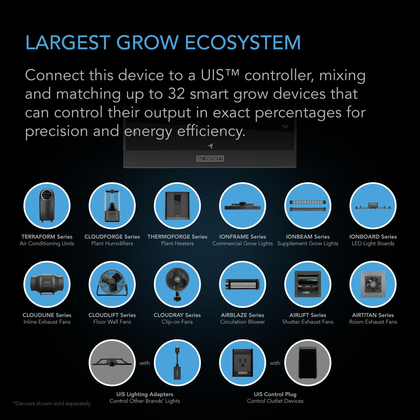 Q: Are the IONBEAM U4 light bars compatible with smart grow systems?A: Yes, the IONBEAM U4 light bars can be connected to AC Infinity's smart UIS controllers, allowing integration with other grow equipment and enabling dynamic climate triggers and app control.