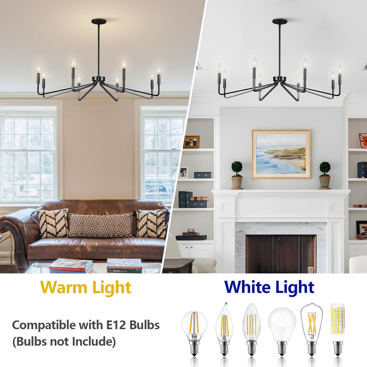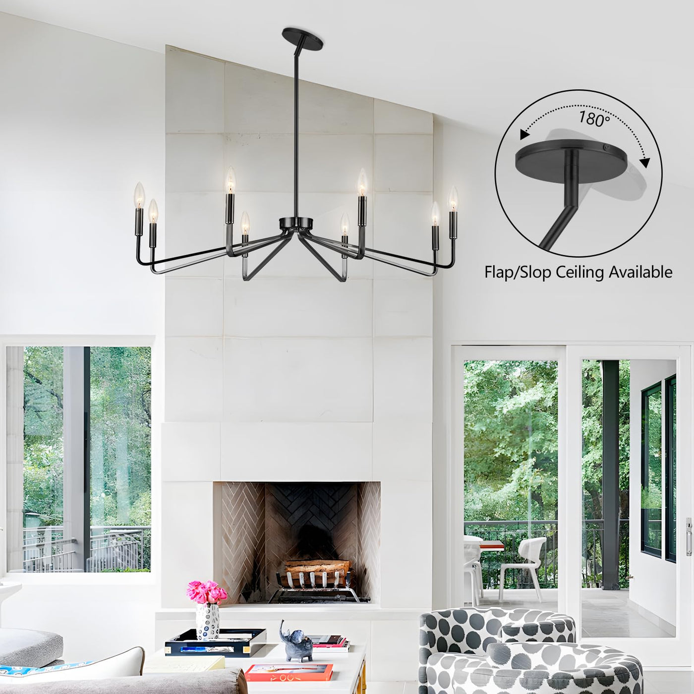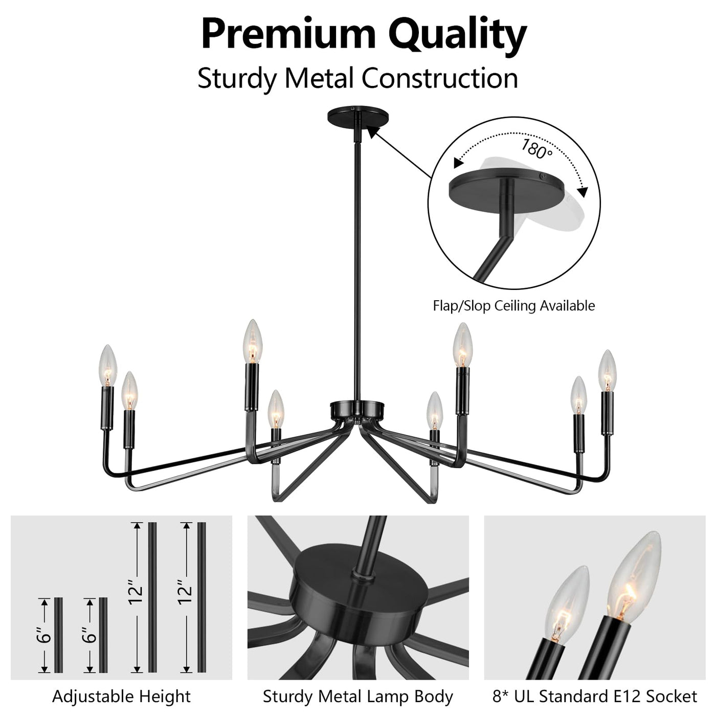 Acaner 38'' Black Chandeliers For Dining Room, 8-Light Modern Farmhouse Candle Style Chandelier, Industrial Hanging Ceiling Ligh