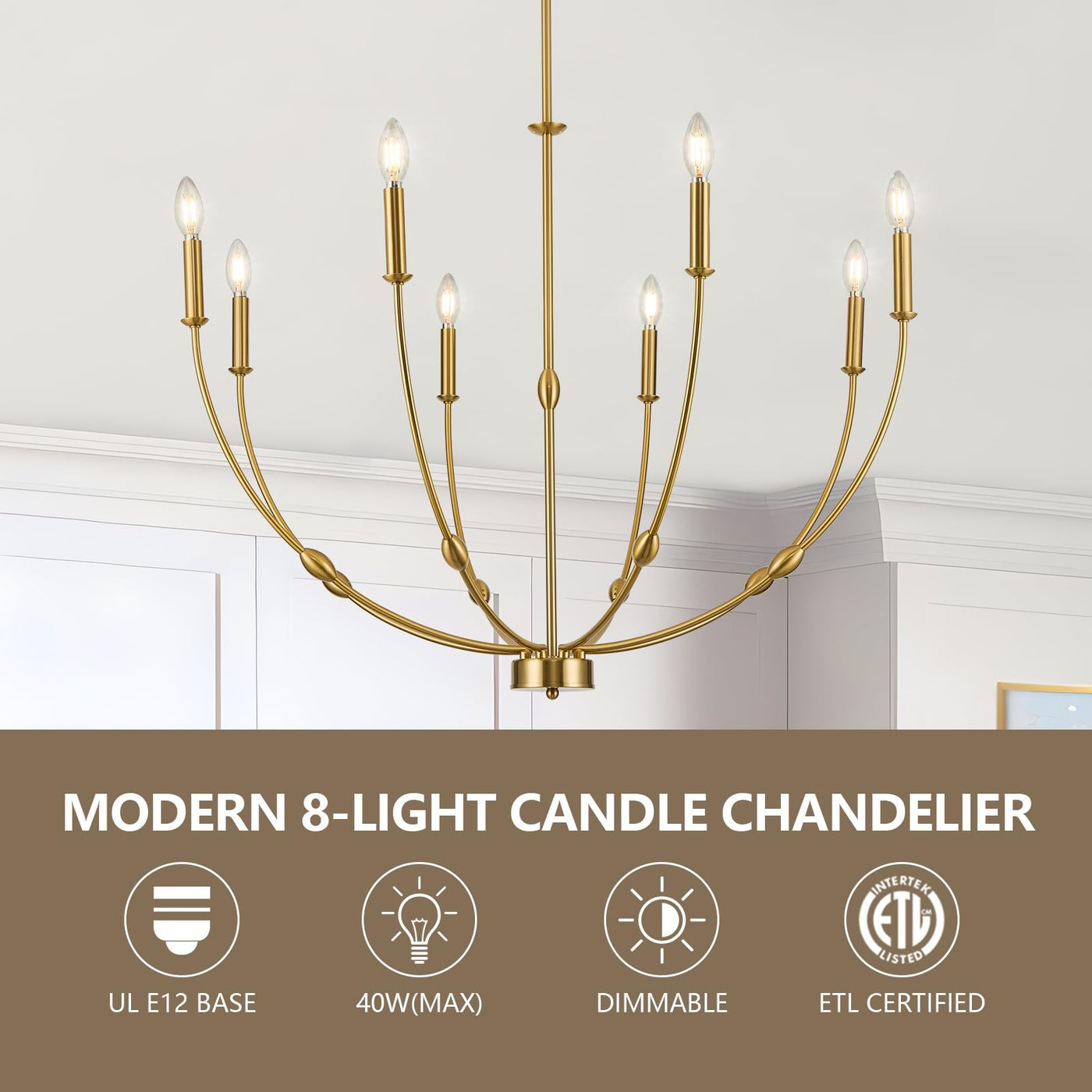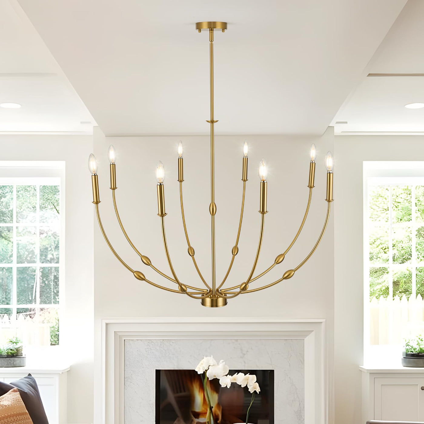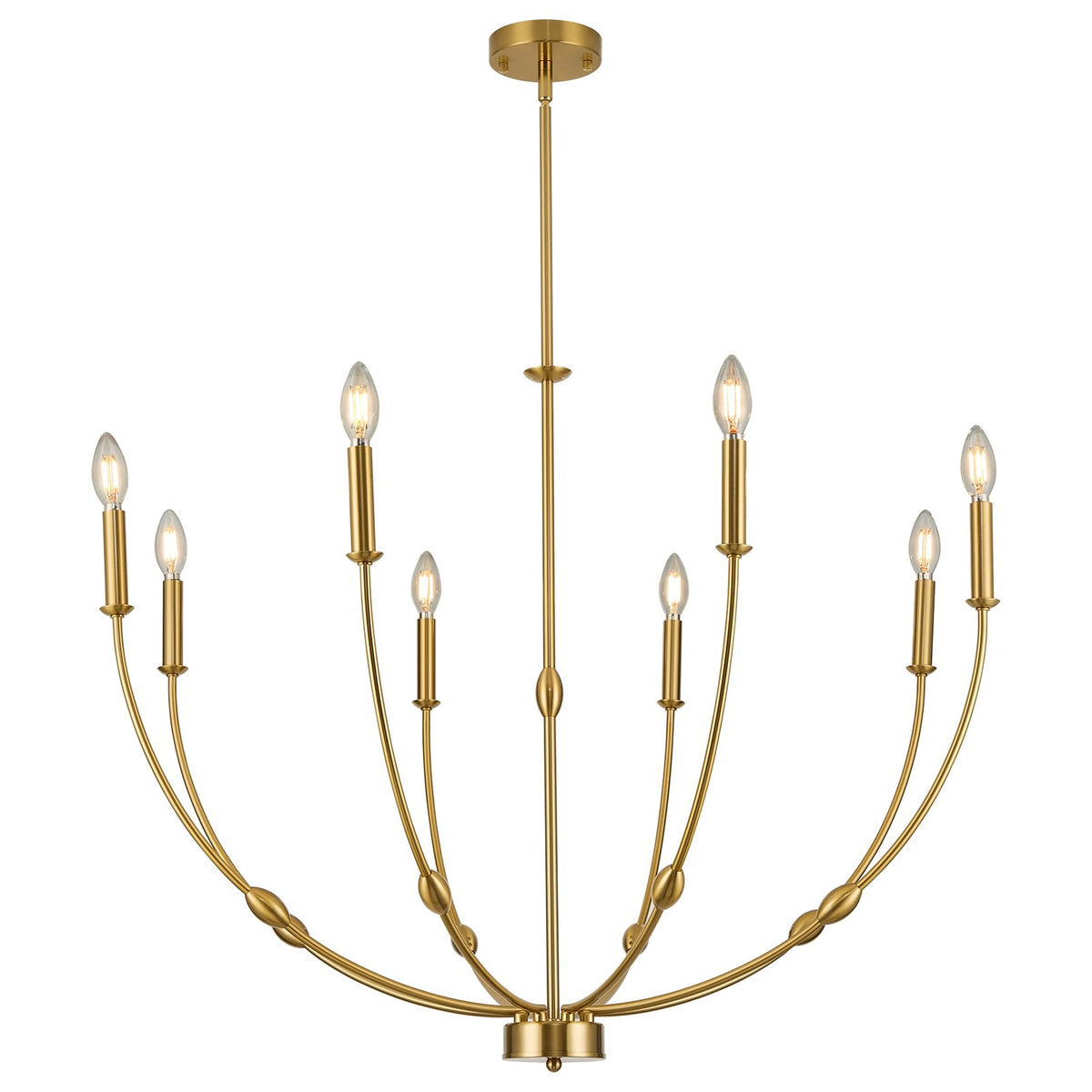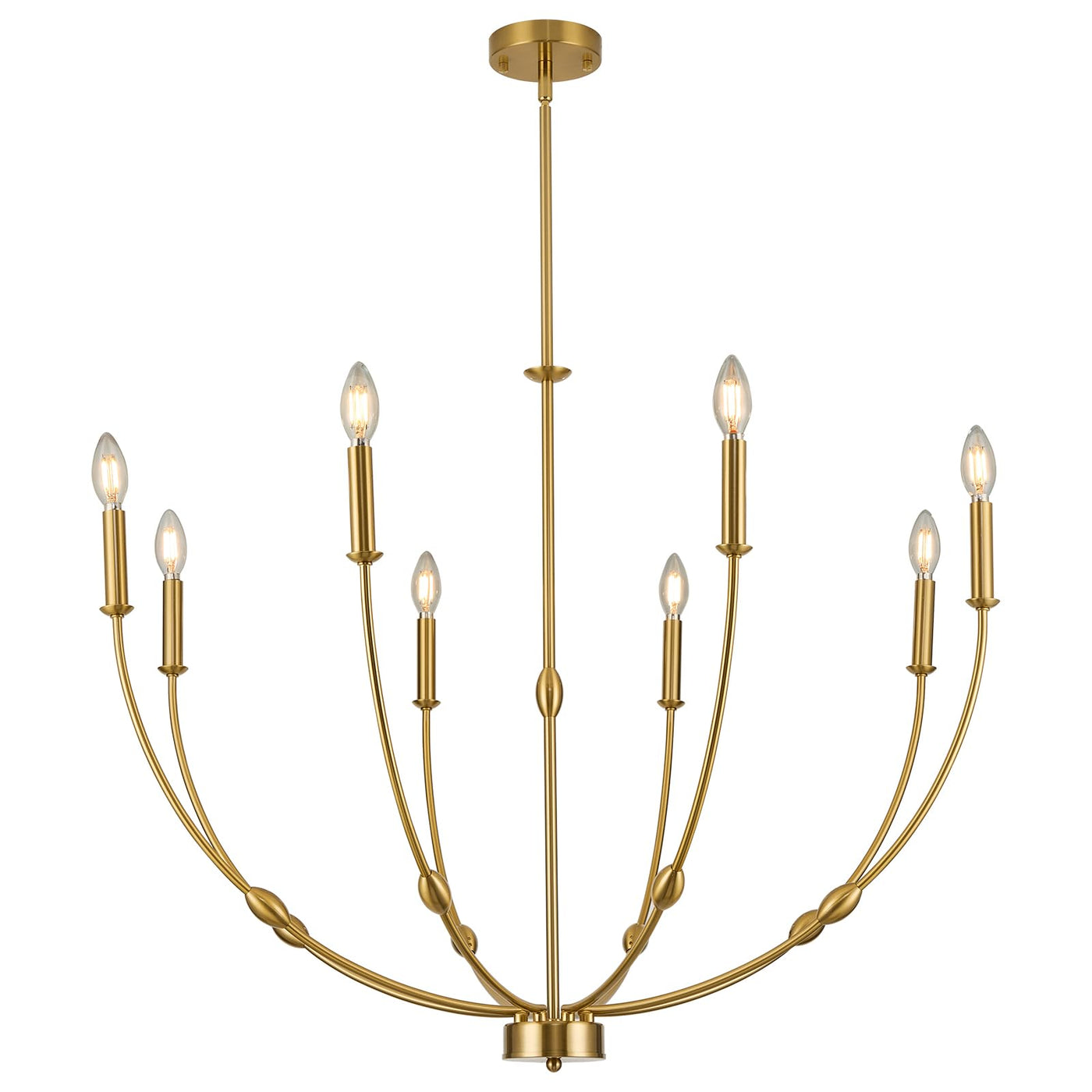 Acaner 8-Light Modern Gold Candle Chandeliers, 35 Inch Large Brass Chandelier For Dining Room, High Ceiling Pendant Light Fixtur