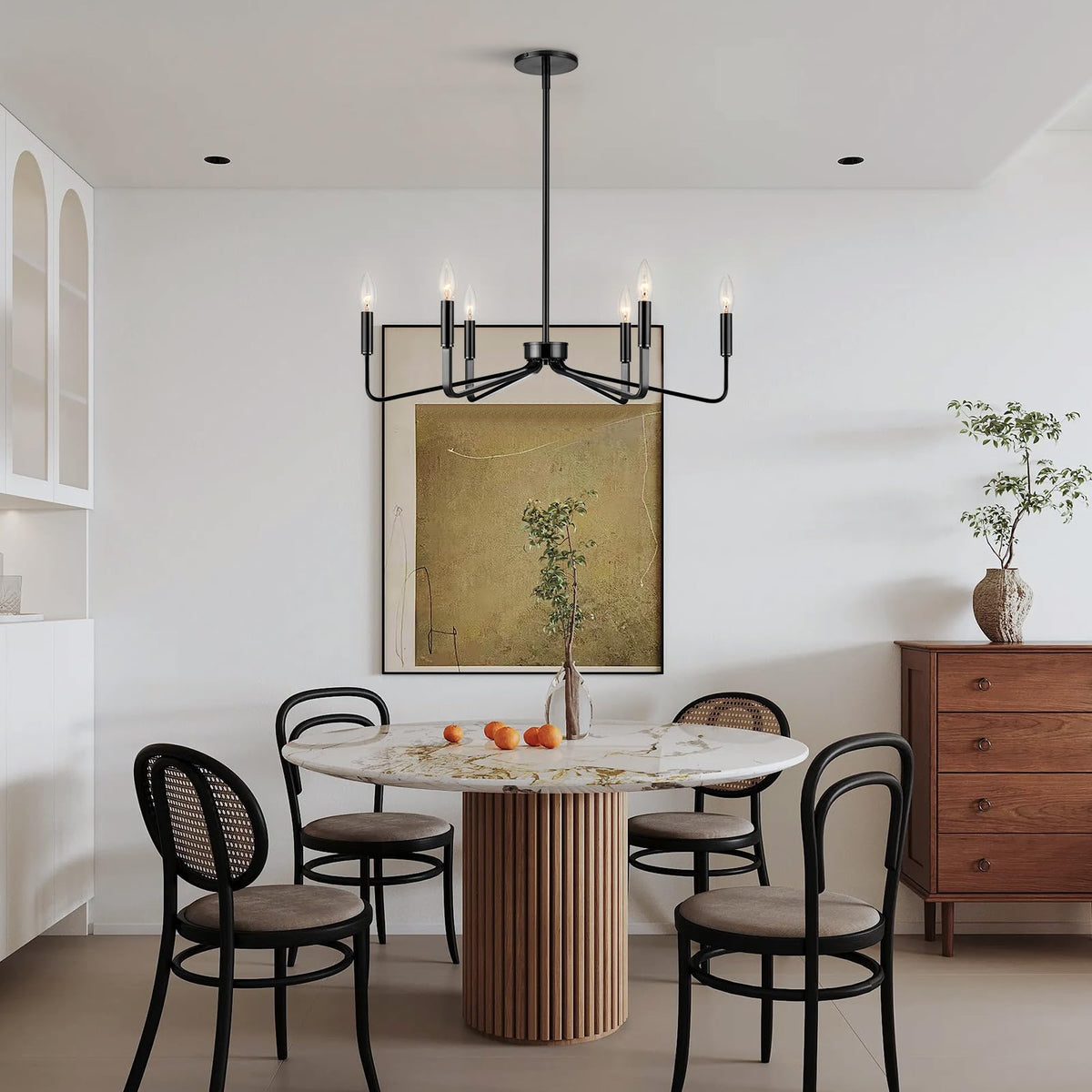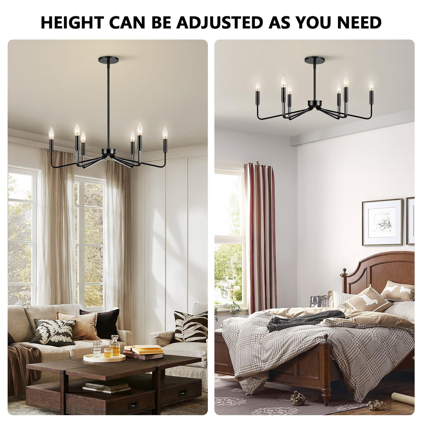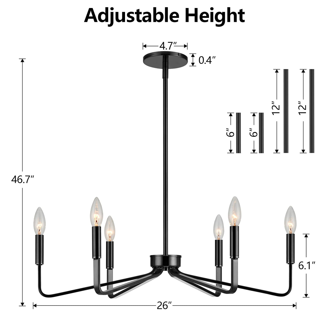Acaner Black Chandelier For Dining Room, 6-Light Farmhouse Kitchen Light Fixtures Over Table, 26'' Rustic Candle Chandelier For