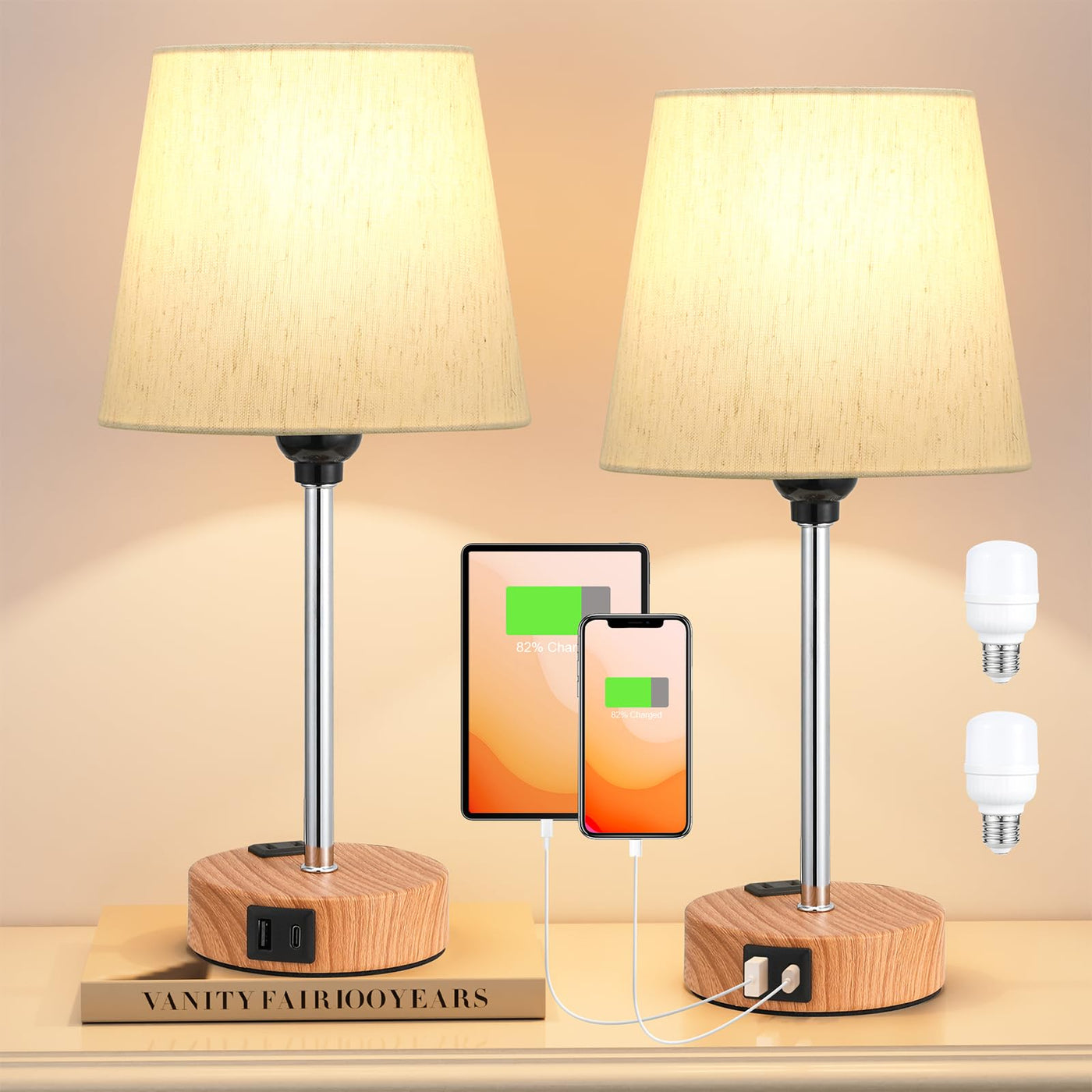 Acaxin Bedside Lamps For Bedrooms Set Of 2 - Nightstand Bedroom Lamp With Usb C Port And Ac Outlet Charging, 3 Way Dimmable Touc