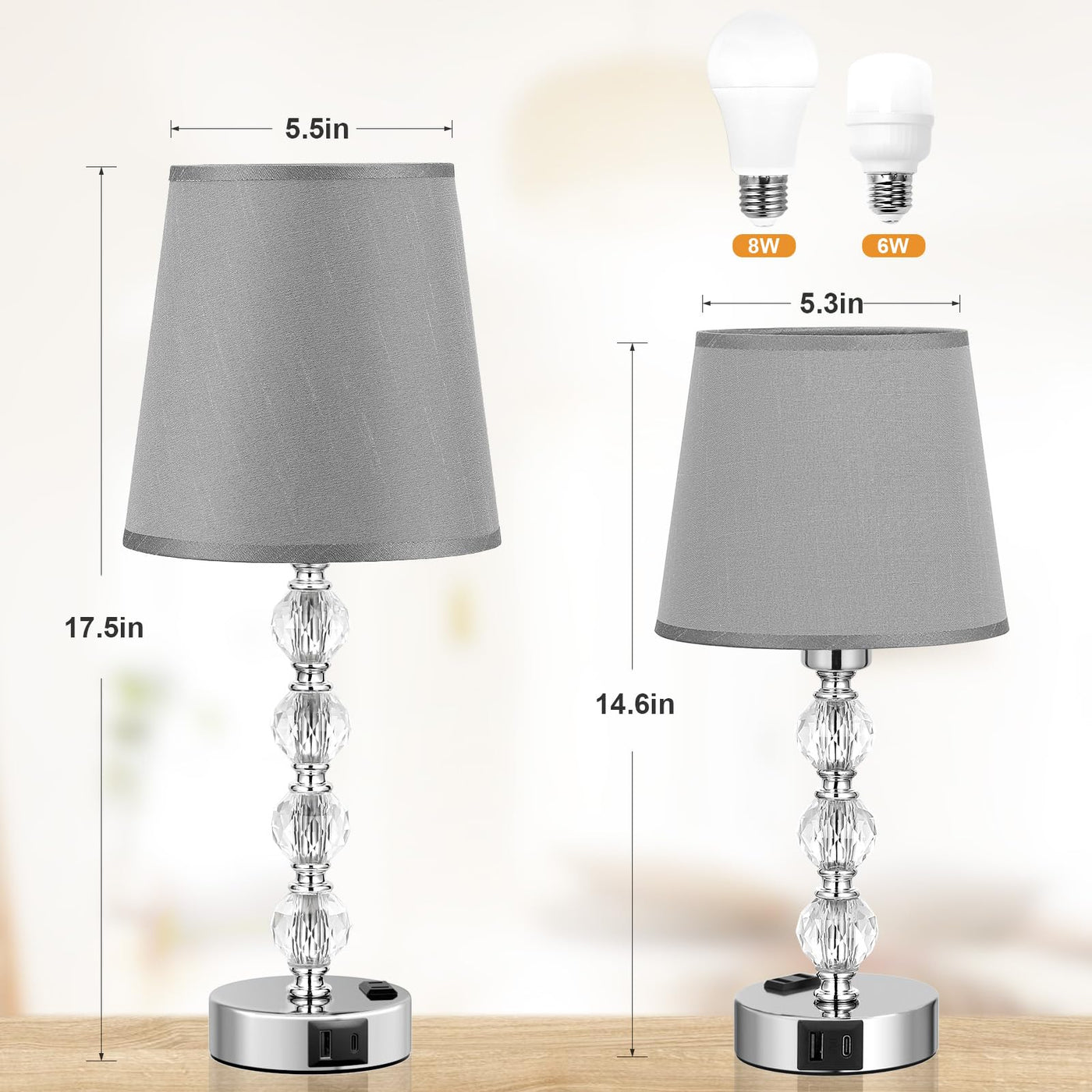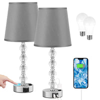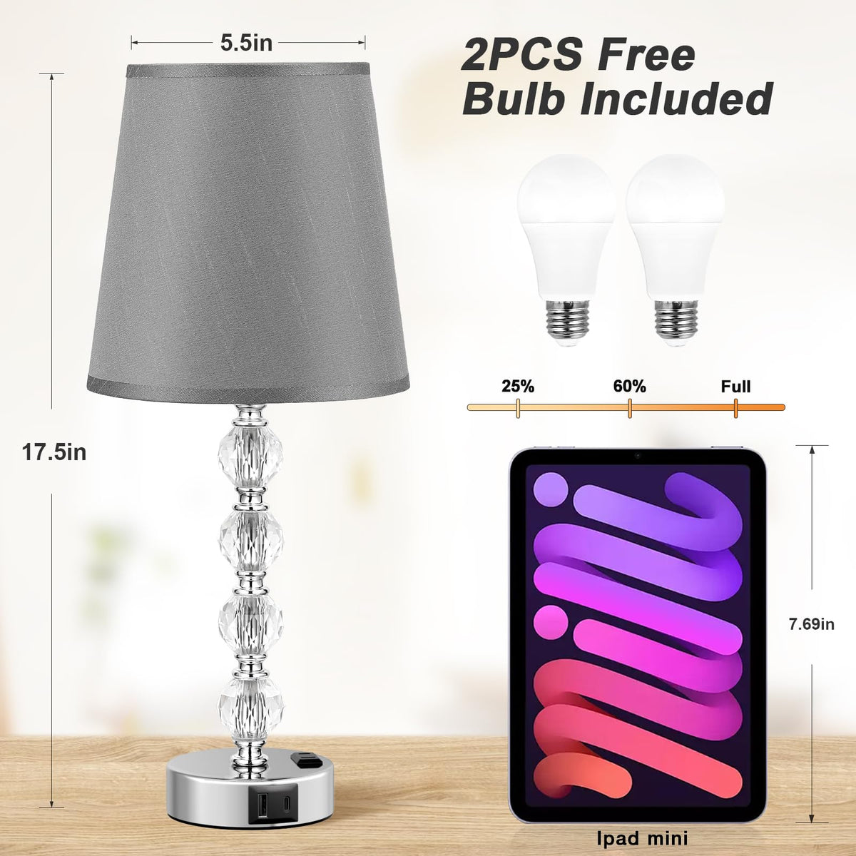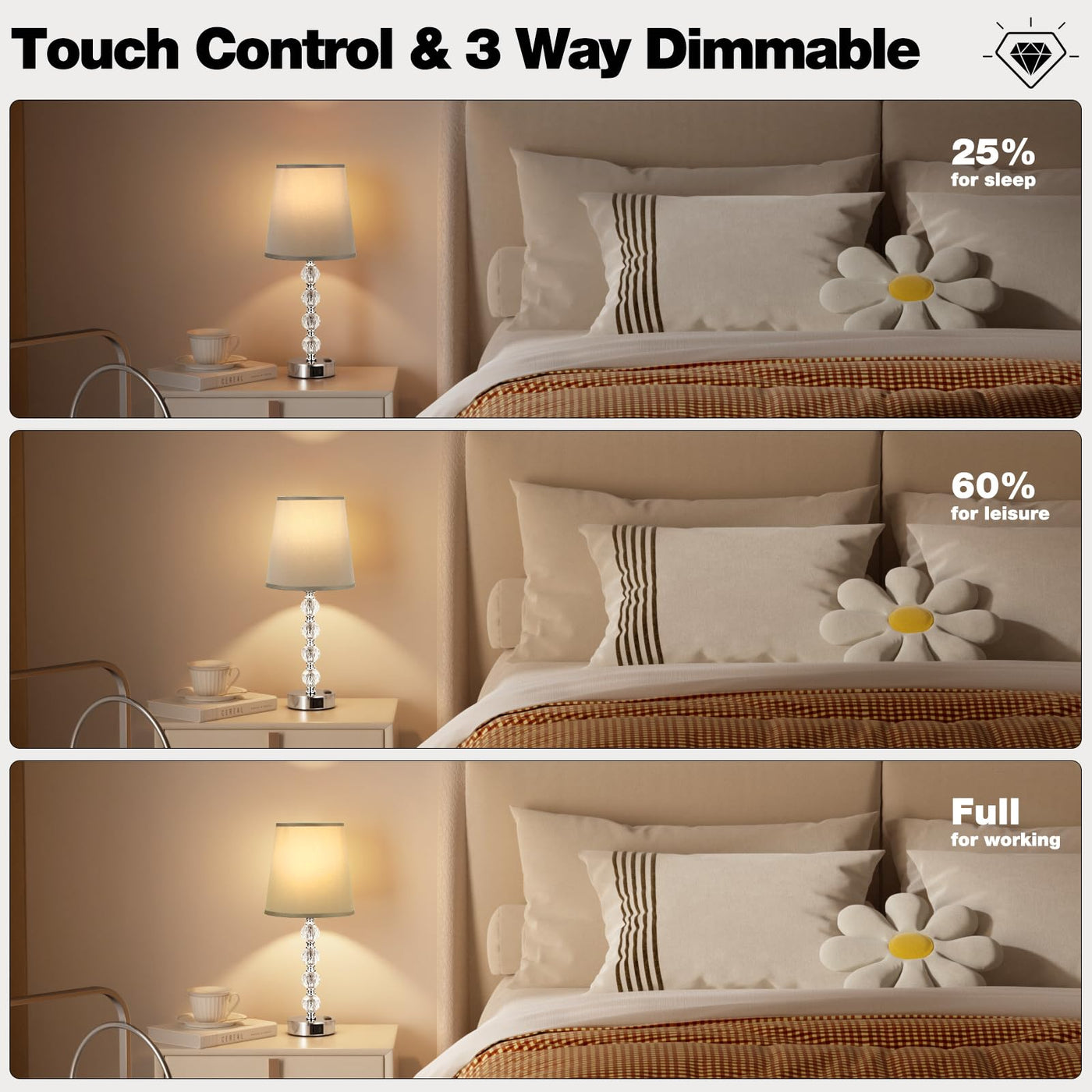 Acaxin Bedside Lamps For Bedrooms Set Of 2 Nightstand - Large Crystal Table Lamps With Usb C Charging Ports And Ac Outlet, 3 Way
