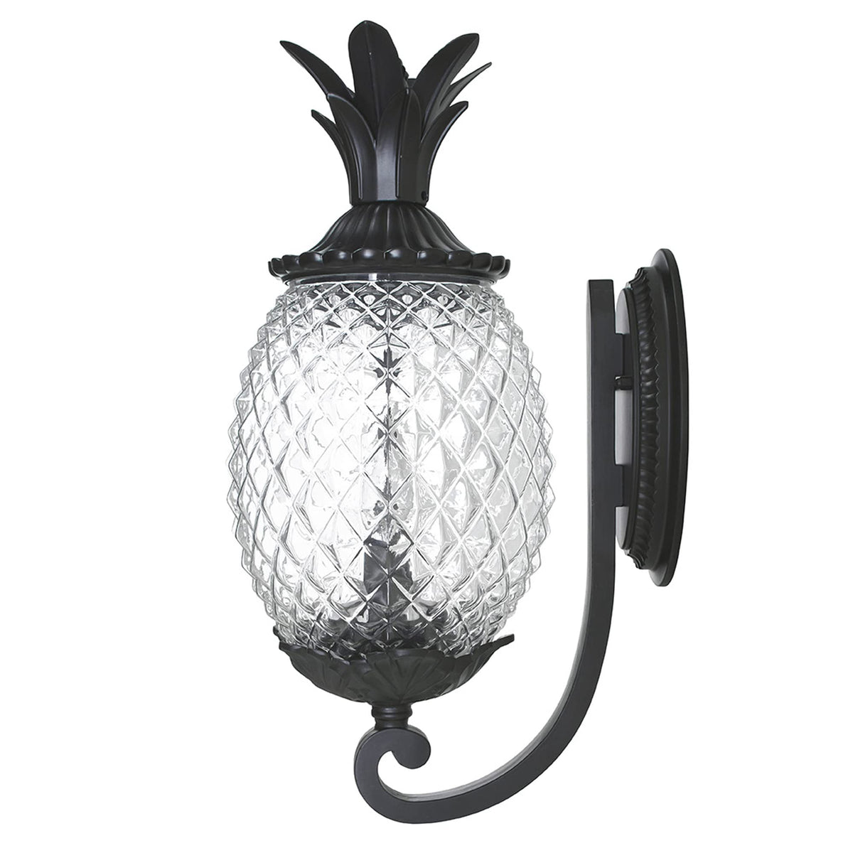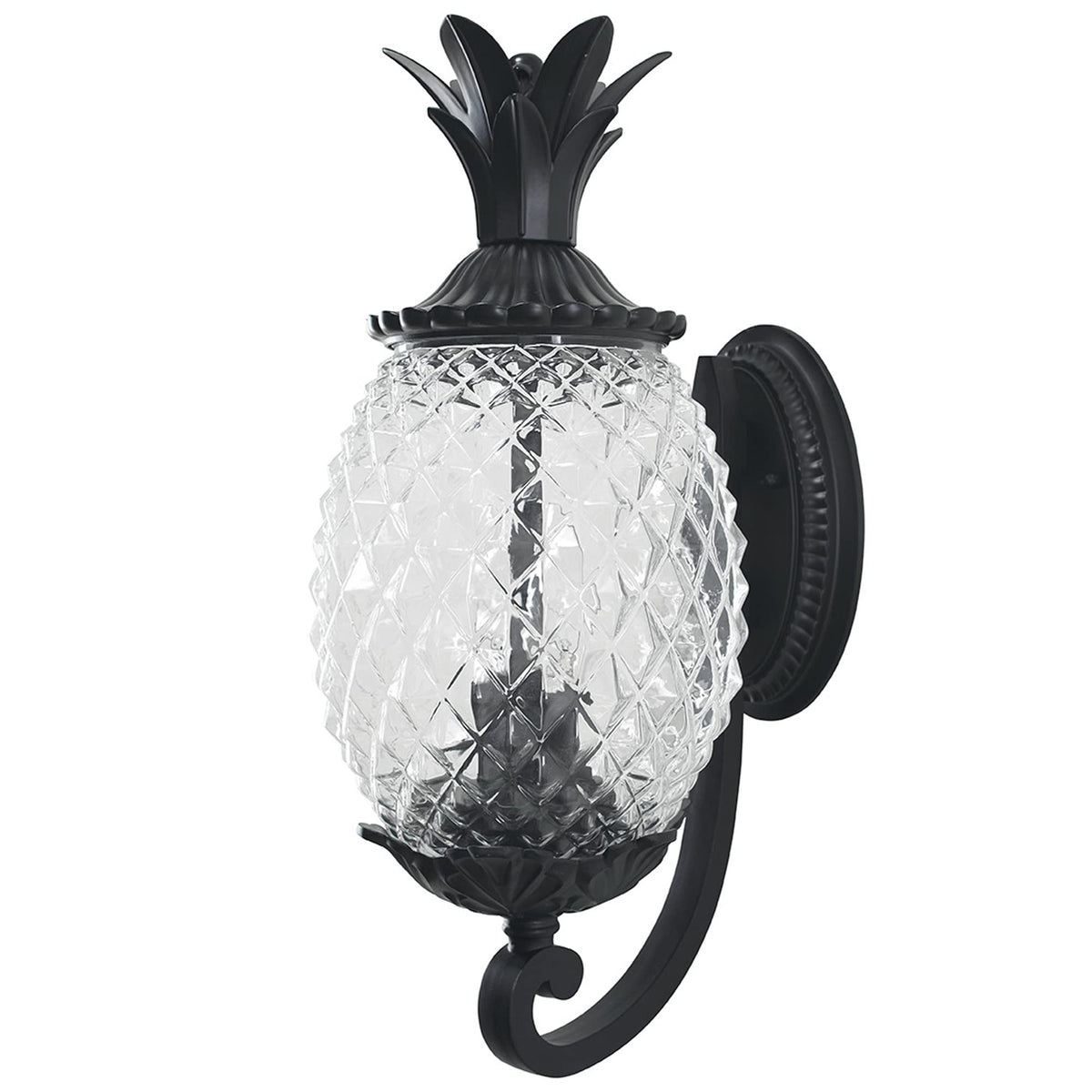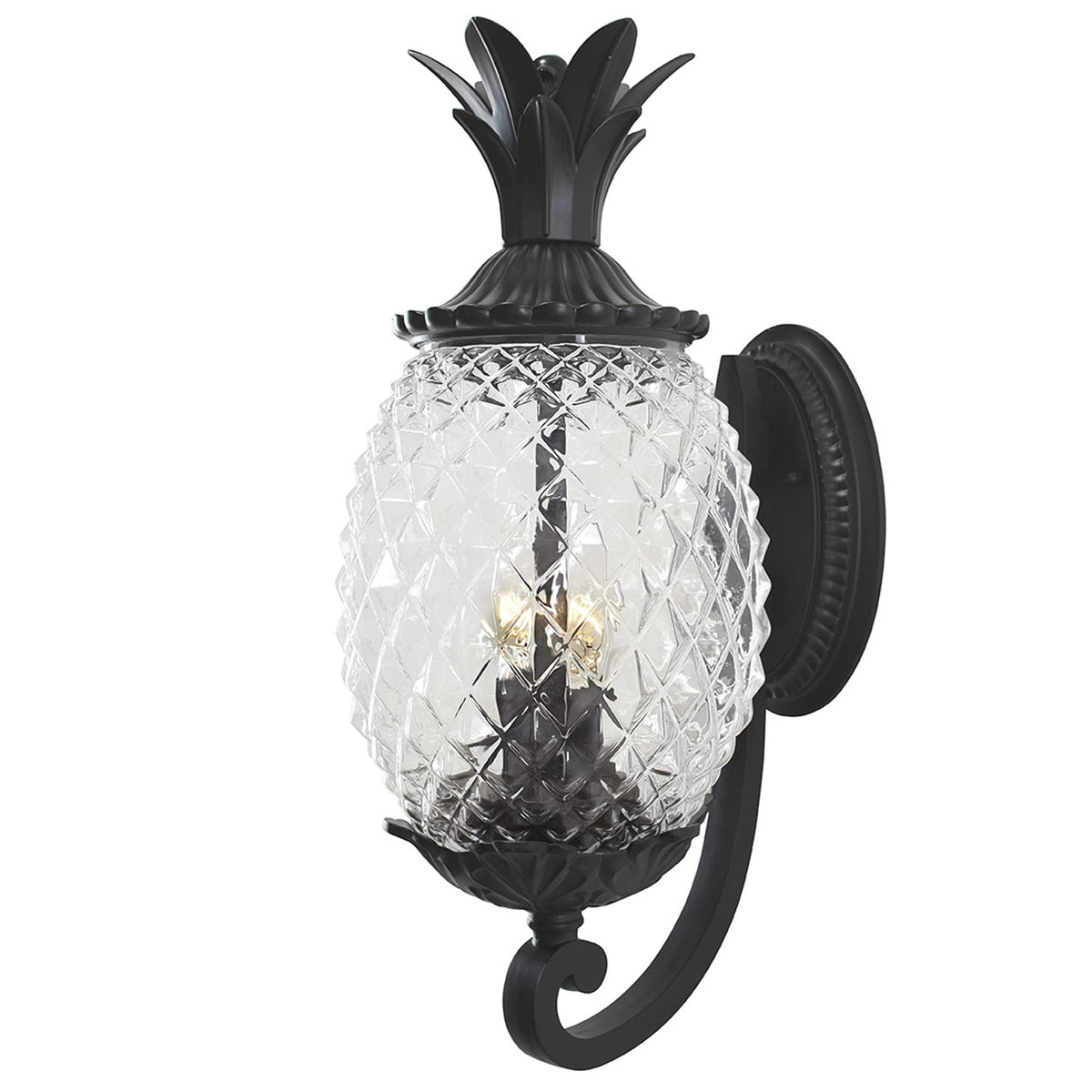Collection embodies southern charm. Welcome guests with this fun tropical fruit shaped lantern. This popular collection is constructed of durable cast aluminum with clear, textured glass in the shape of a pineapple, making it a delightful addition to any outdoor space. The Leaf, Flower, Fruit Two Light Outdoor Wall Mount from the Lanai collection in a sleek Matte Black finish combines style and functionality, enhancing your home's exterior while providing ample illumination.