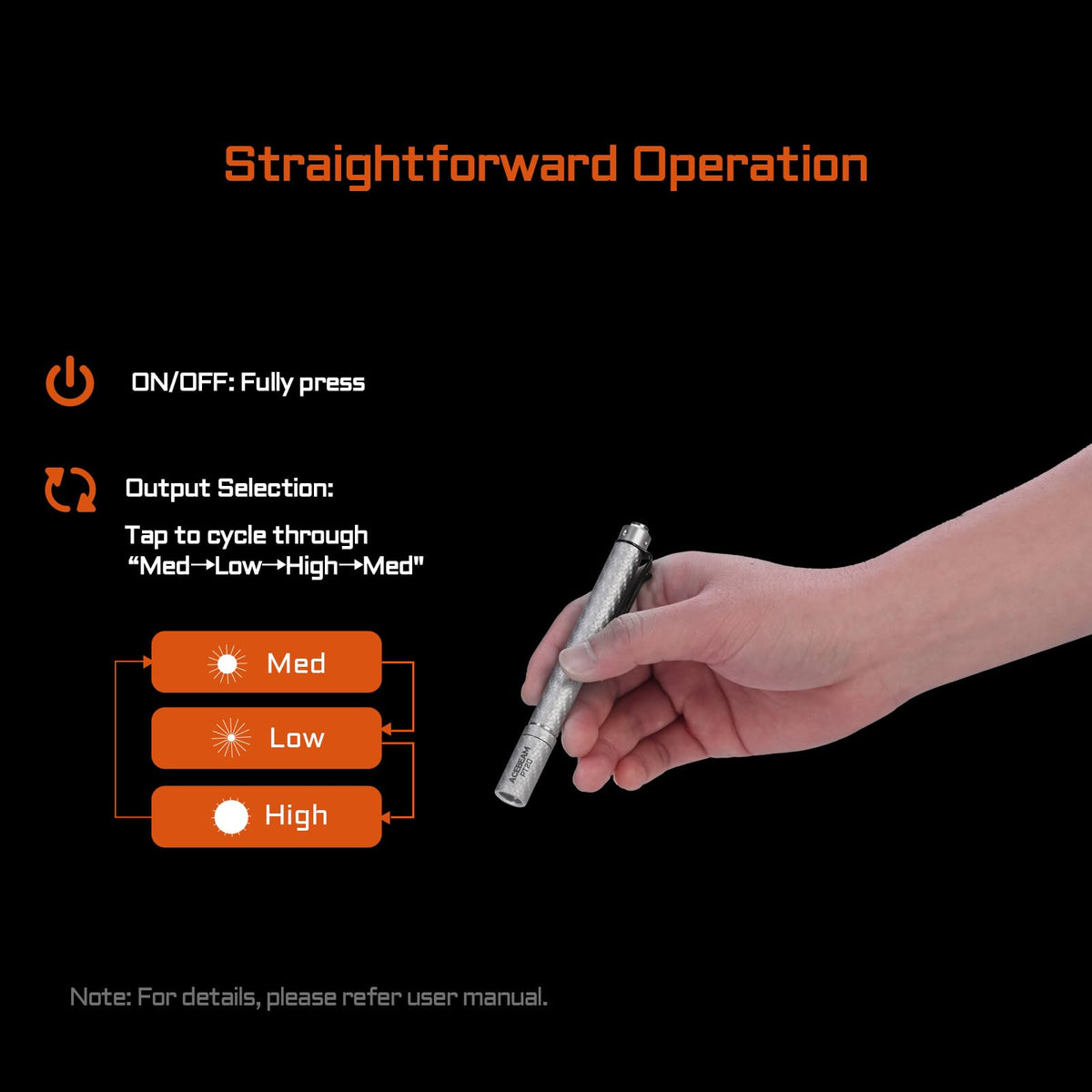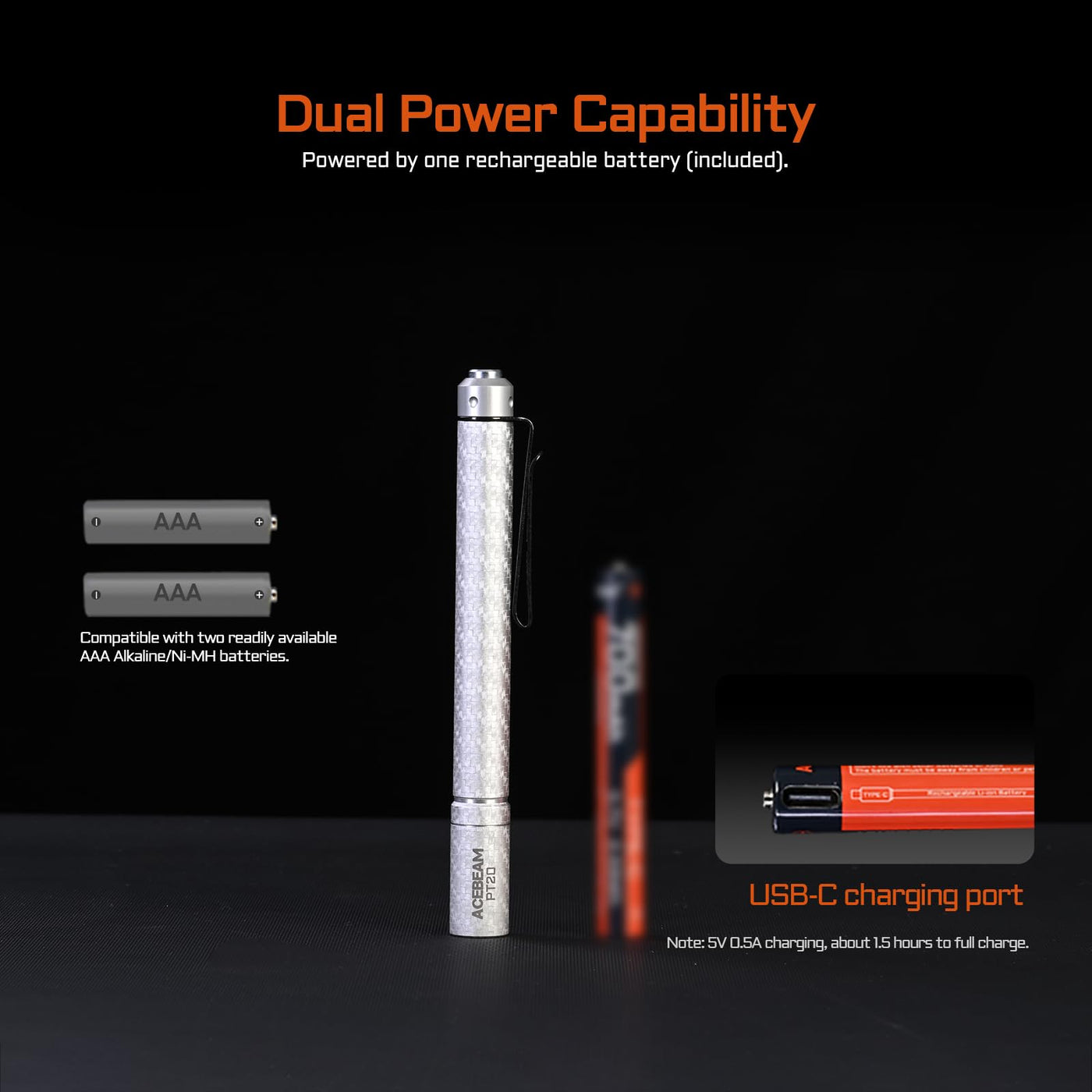 Acebeam Pt20 2 Aaa Edc Flashlight Rechargeable, 500 High Lumens Pen Flashlight With Clip, Compact Pocket Mini Led Flash Light, S