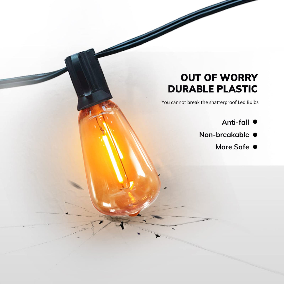 Q: Are these string lights safe for outdoor use?A: Yes, the Achin Outdoor String Lights are designed with safety in mind. The shatterproof plastic bulbs eliminate the risk of broken glass, and the waterproof feature allows them to withstand different weather conditions, making them safe for continuous outdoor use.
