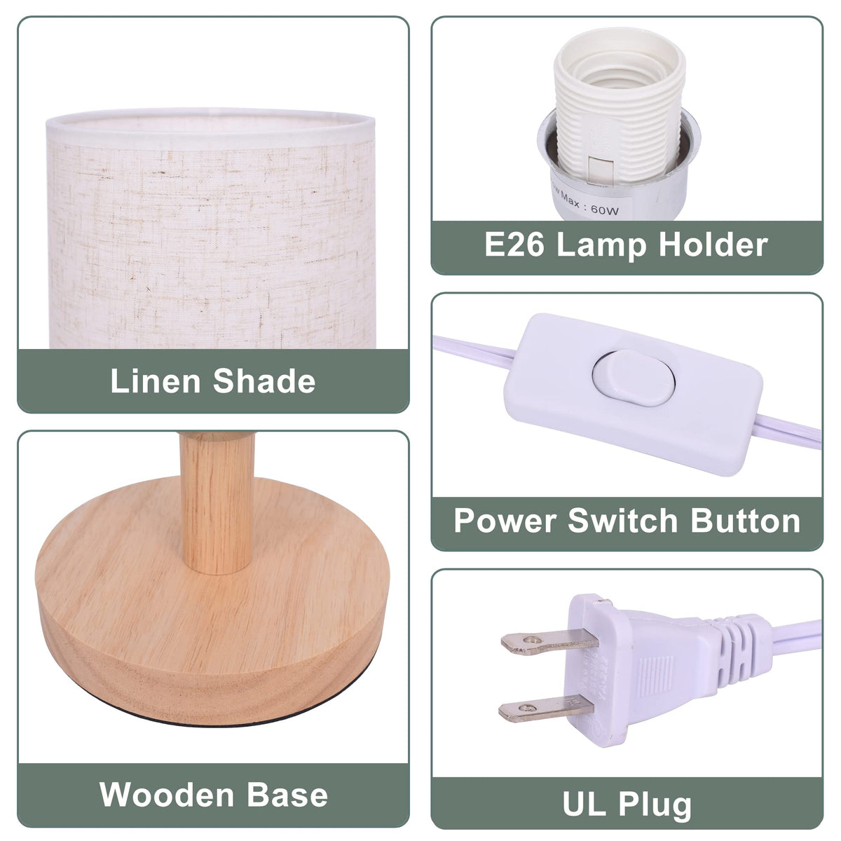 Achuai Small Table Lamp-Wooden Bedside Lamp Simple Bedroom Lamp Linen Shade Mini Desk Lamp Night Light Nightstand Lamp For Bedroom,Living Room,Kids Room (Including Led Bulbs) (Round)