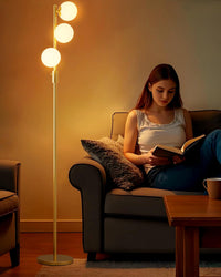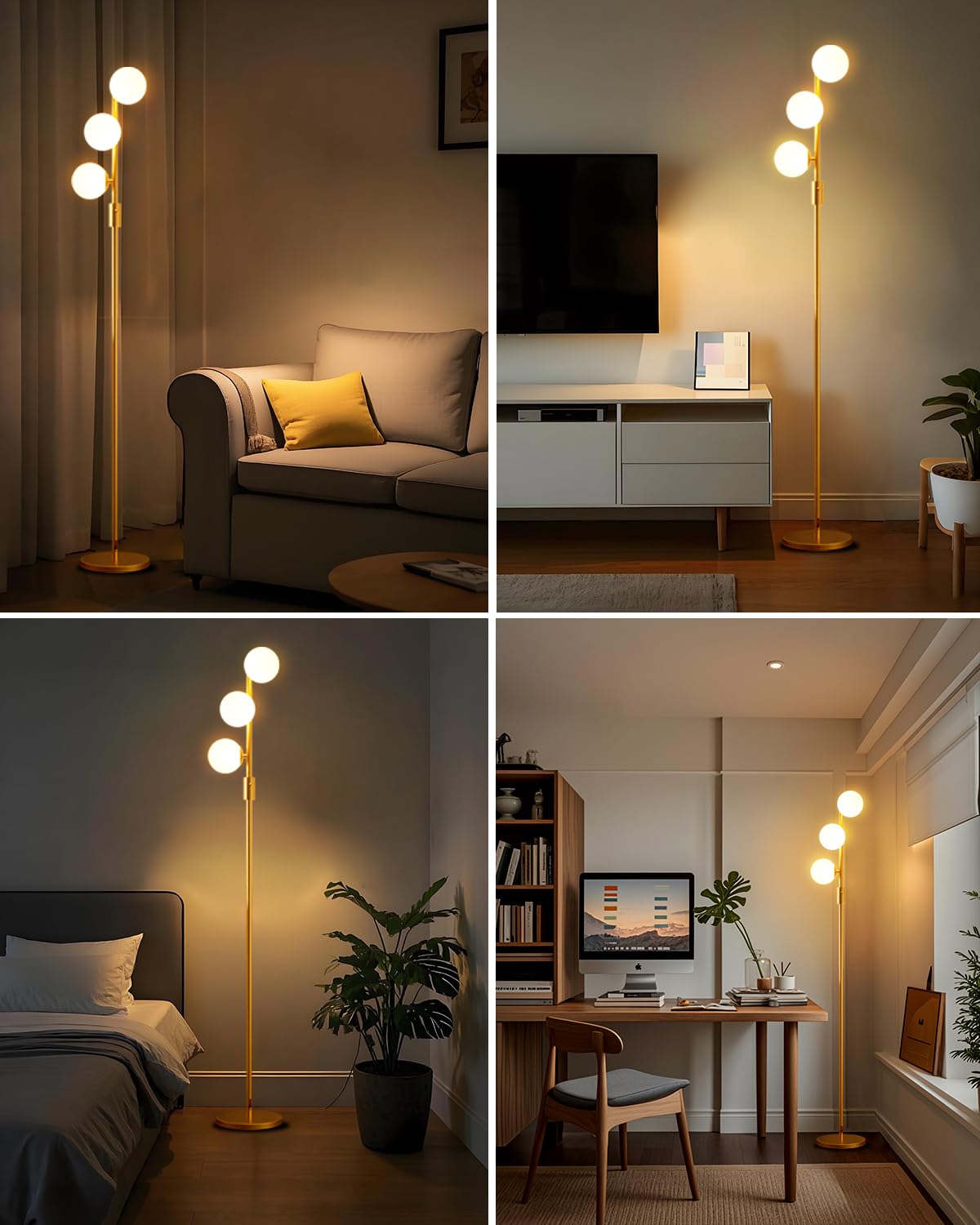 Acohook 64In Dimmable Gold Floor Lamp, Tall Standing Lamps With 3 Globe Soft Warm White Eye Care 3000K G9 Bulbs, Mid Century Mod