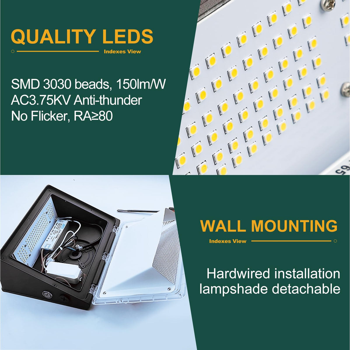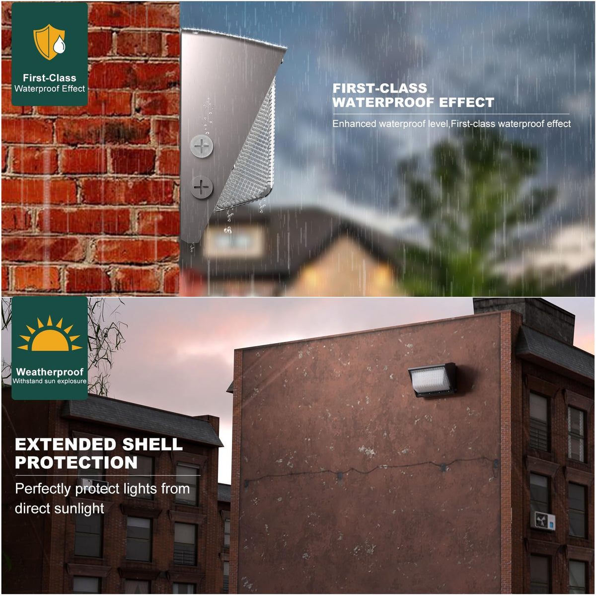 Q: Are these LED wall pack lights suitable for wet outdoor conditions?A: Yes, the ACOHOOK LED Wall Pack Lights are IP65 waterproof rated, ensuring they can withstand wet and harsh outdoor conditions while providing reliable lighting.