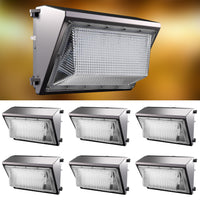 Acohook 6Pack 150W Led Wall Pack Lights, 100-277V Dusk To Dawn With Photocell, 22500Lm 5000K Daylight Ip65 Waterproof Wall Mount Outdoor Security Lighting Fixtures, Energy Saving-Brown