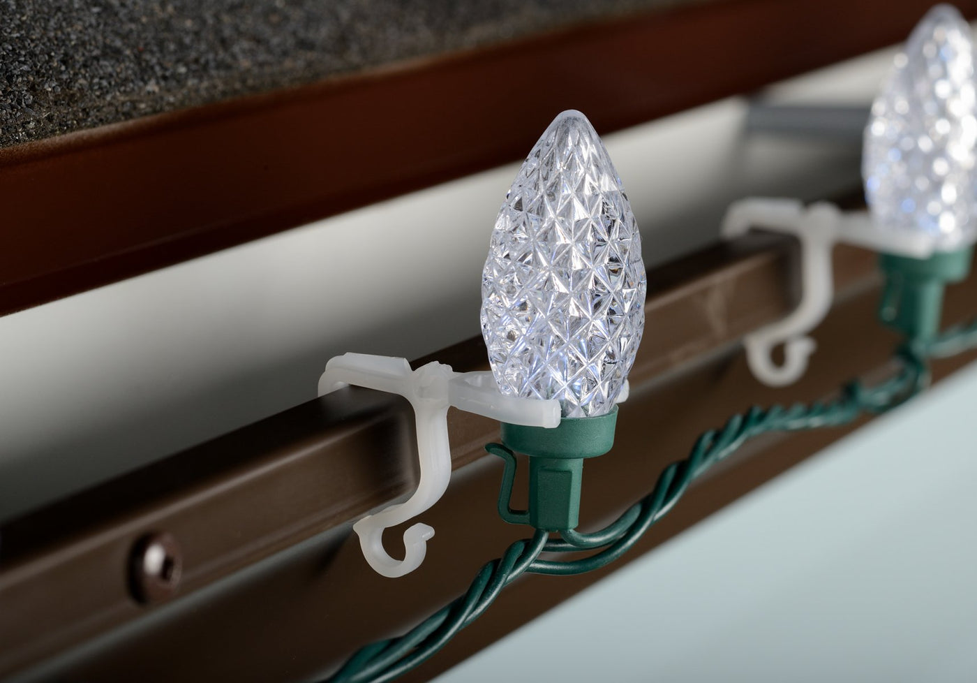 This is really the best light clip ever. Carefully designed by Adams engineering team, the new all purpose light holder/clip tops the market in ease of use and functionality. The holder/clip holds all types of lights on roofs and gutters- including c5, c7, c9, mini, icicle, rope, LED and specialty lights. It even allows for precise positioning for professional results.