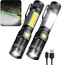Adamstar Small Powerful Flashlights With Cob Work Light, Magnetic Base, Super Bright High Lumens Rechargeable Flashlight, Led Wa
