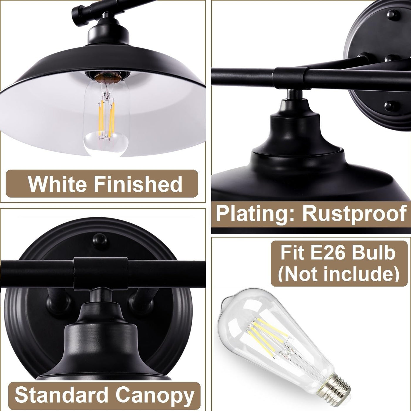 Q: What type of bulbs can I use with the Adcssynd Farmhouse Bathroom Vanity Light?A: The Adcssynd Farmhouse Bathroom Vanity Light is compatible with E26 bulbs, including LED, CFL, halogen, or incandescent types. Please note that bulbs are not included with the fixture.