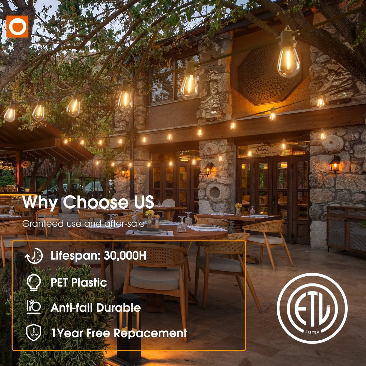 Addlon 100Ft Outdoor String Lights Led Waterproof Patio Lights With 54 Edison Dimmable Bulbs Shatterproof Hanging Lights For Out