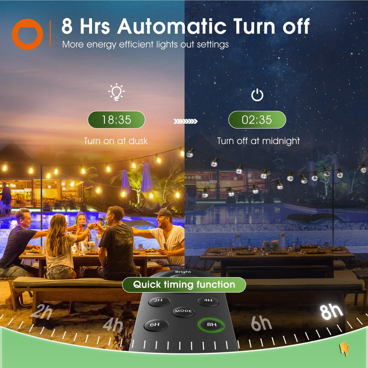 G40 Solar String Lights Outdoor With Remote, Commercial Grade Patio Lights